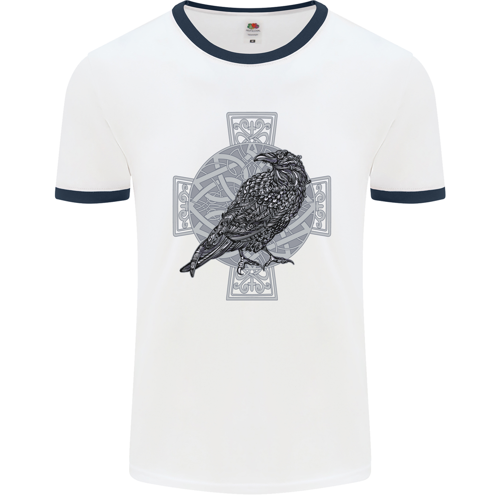 Embrace the ancient mystique of the Celts with our Odin Celtic Raven Viking Tattoo Cross Runic Men's Ringer T-Shirt. This striking tee combines traditional Celtic symbolism with a modern design twist, perfect for those who are drawn to both history and style.