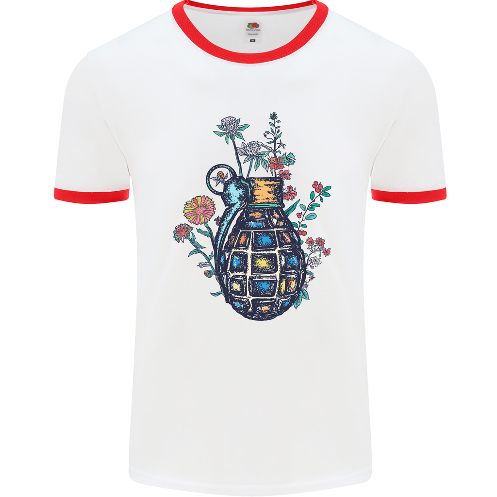Embrace peace and spread love with our Peace Grenade Anti-War Pacifist World Hippy Men's Ringer T-Shirt! This unique t-shirt is more than just a piece of clothing; it's a statement, a symbol of unity and understanding. Designed for those who believe in the power of peace, this t-shirt is a must-have for every peace-loving individual.