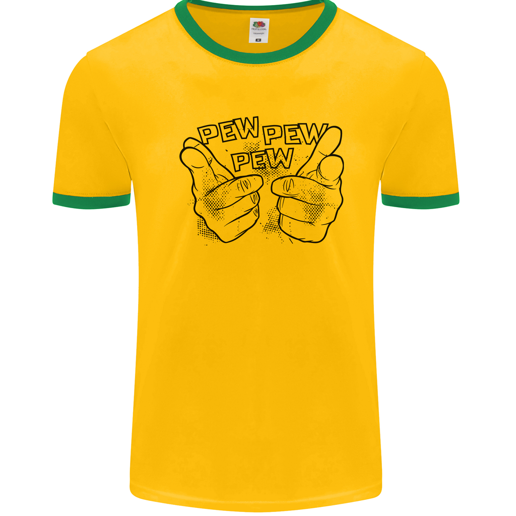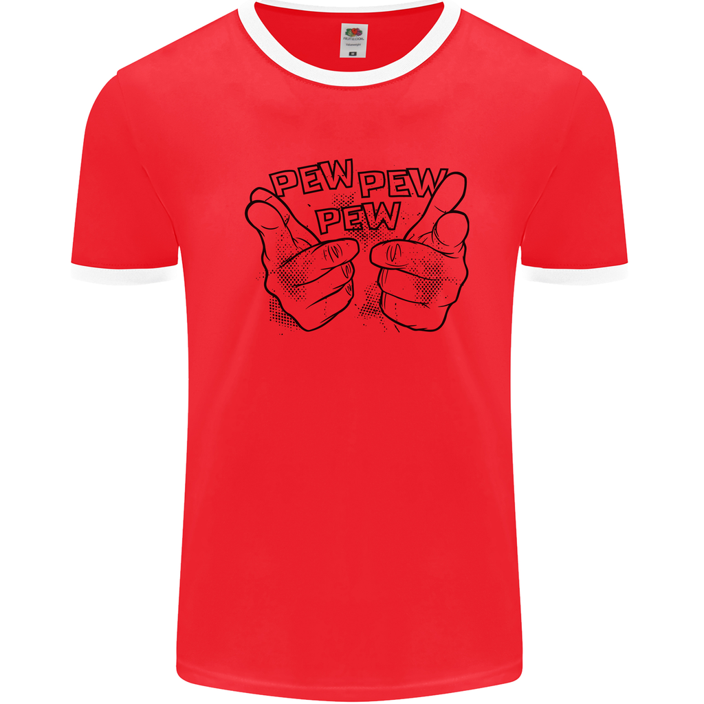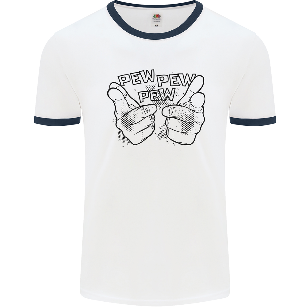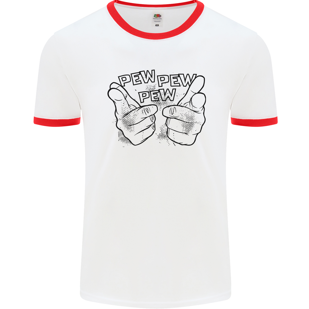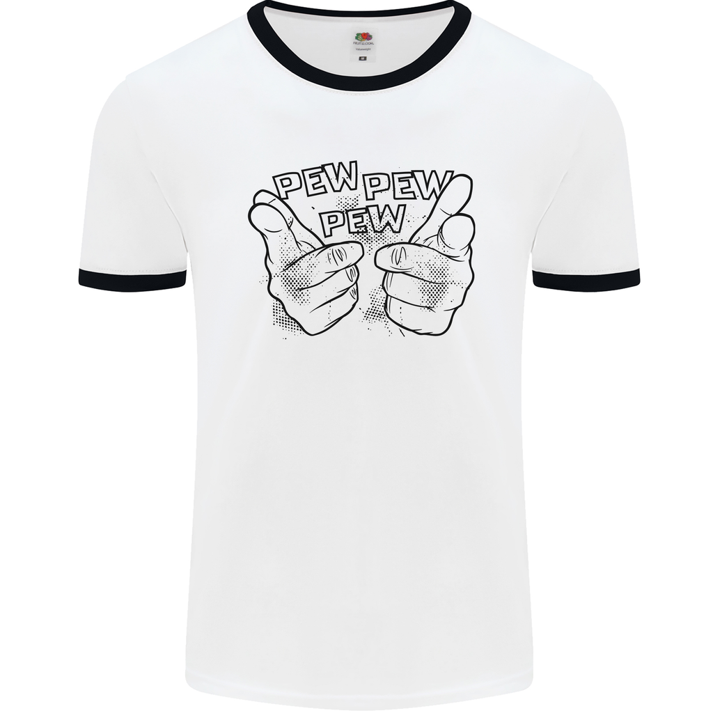 Pew Pew Pew Hands Funny Lightsabre Sci-Fi Mens Ringer T-Shirt