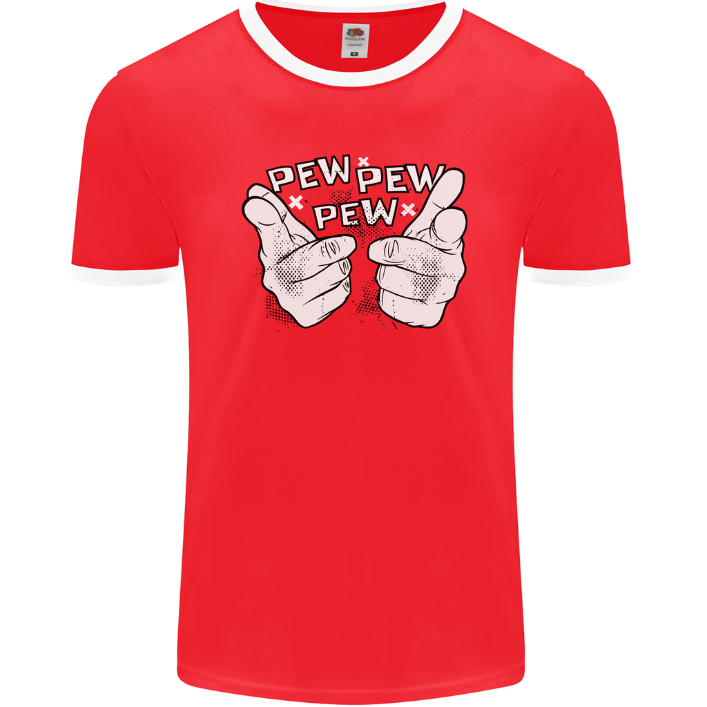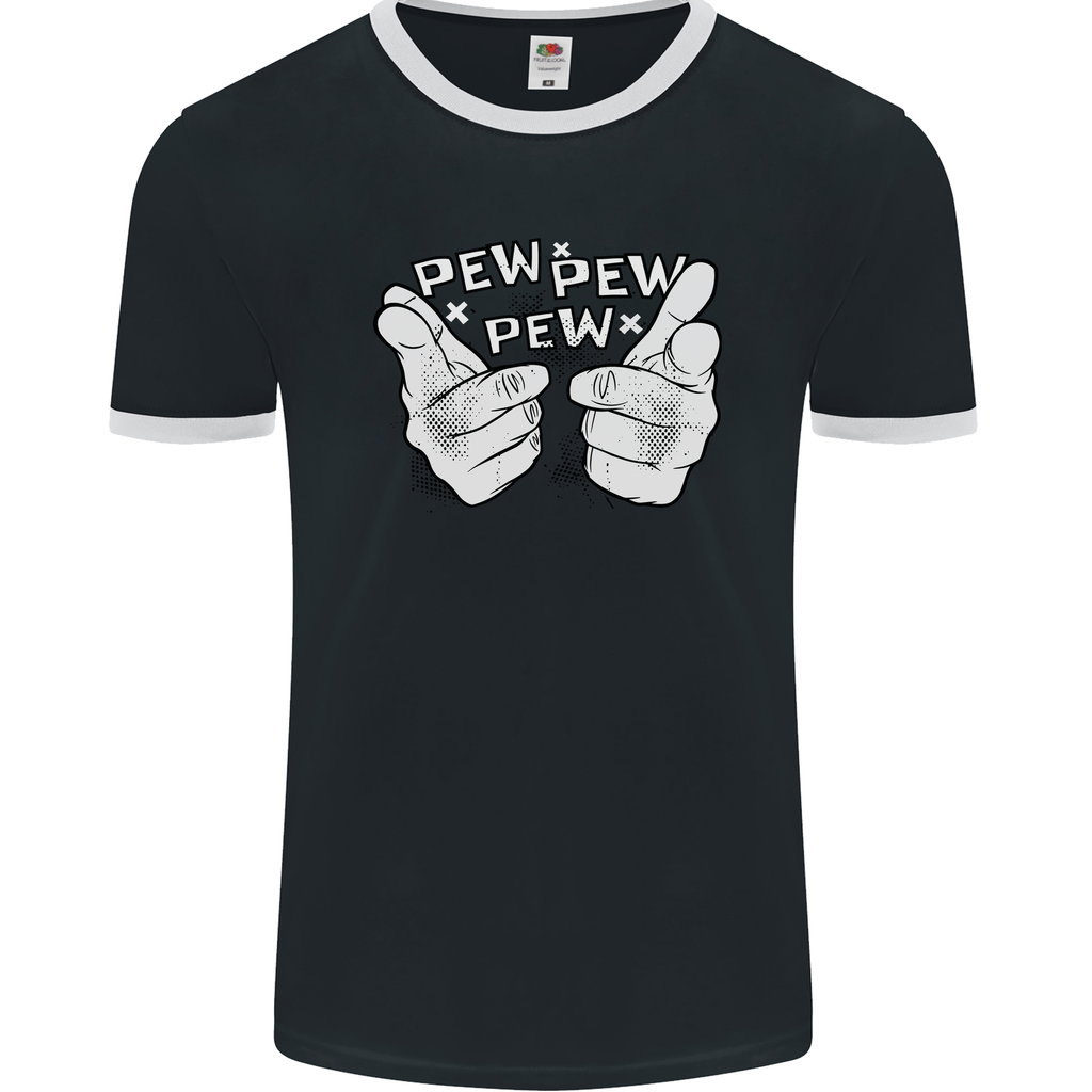 Welcome to a galaxy far, far away where whimsical meets futuristic with our Pew Pew Pew Hands Funny Sci-Fi Lightsabre Men's Ringer T-Shirt by FotL. Step into the spotlight and showcase your love for all things sci-fi with this vibrant and quirky tee that is sure to turn heads wherever you go.