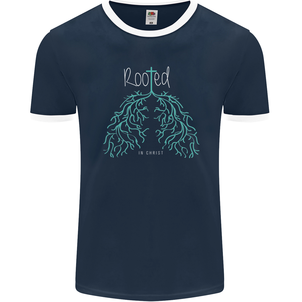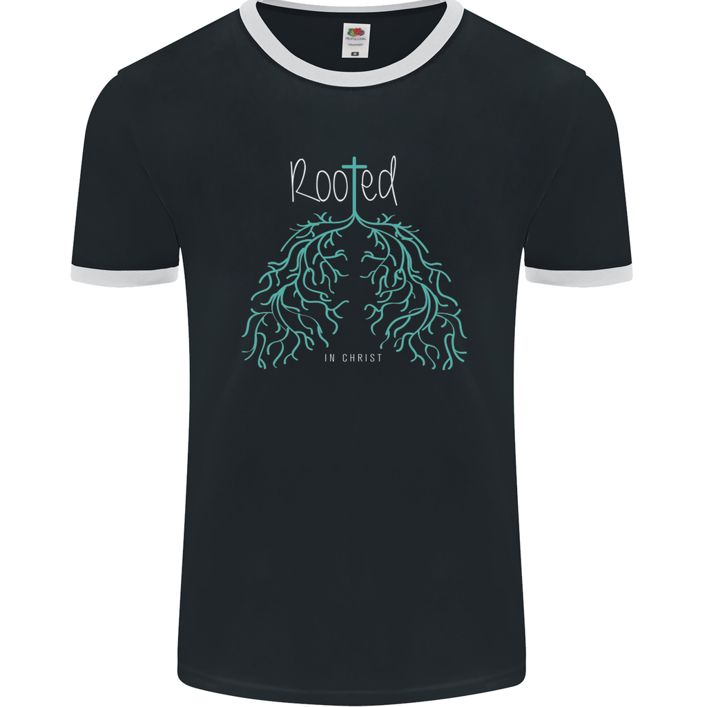 Welcome to the Rooted Christ Christian Catholic Religion Mens Ringer T-Shirt by FotL, a symbol of faith and style combined in one classic design.