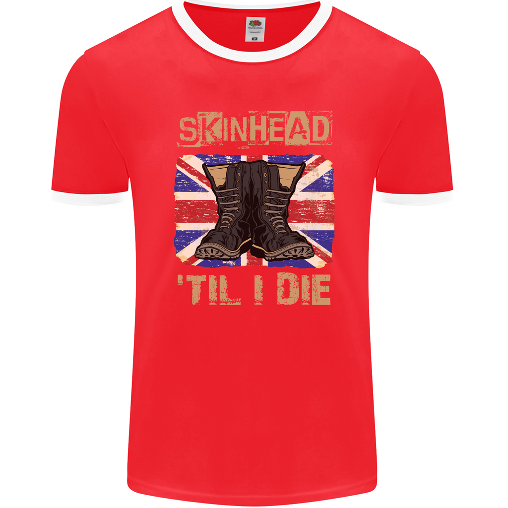 Elevate your music-inspired wardrobe with the Skinhead Til I Die Punk Music Men's Ringer T-shirt and show the world that punk's not dead—it's alive and kicking on your doorstep!