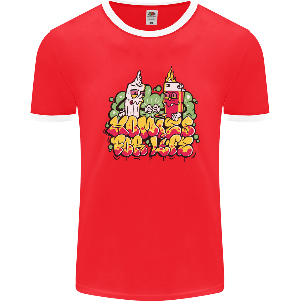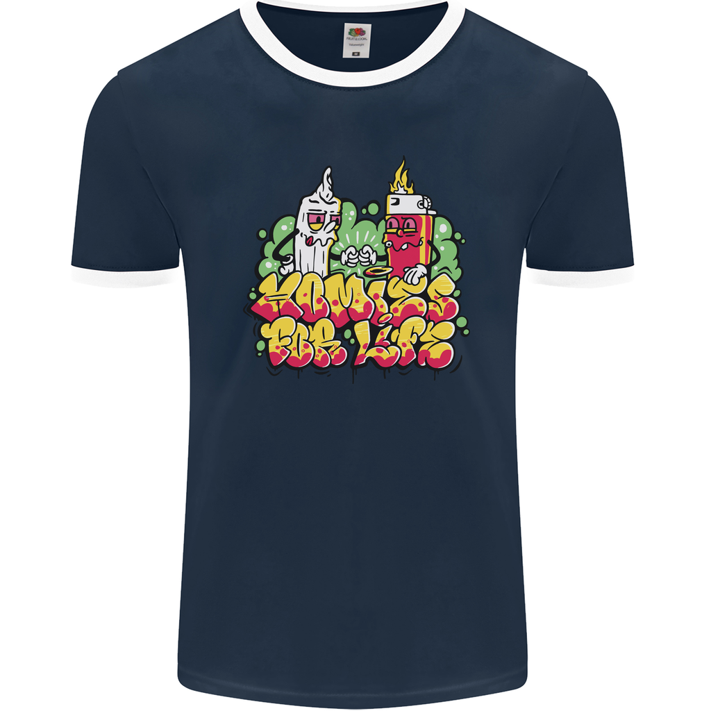 Welcome to the world of fun and style with the Spliff & Lighter Homies Funny Weed Cannabis Mens Ringer T-Shirt by FotL. This uniquely designed t-shirt is a must-have for all the cannabis enthusiasts out there looking to add a touch of humour to their wardrobe.