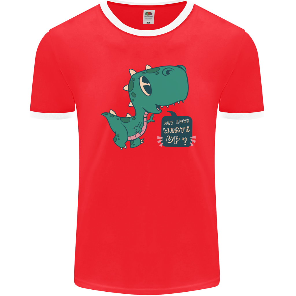 Step into a world of fun and creativity with the T-Rex Whats Up Men's Ringer T-Shirt from FotL! This striking t-shirt is not just a piece of clothing; it's a statement. Perfect for casual outings or relaxed weekends, the fun and quirky dinosaur print will surely turn heads and spark conversations wherever you go.