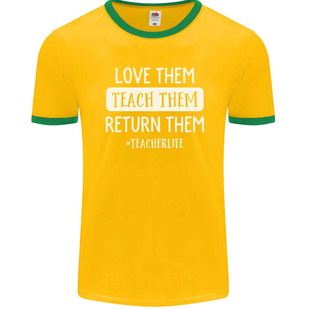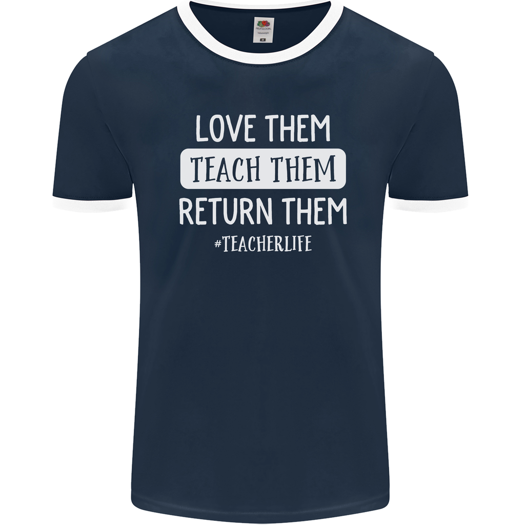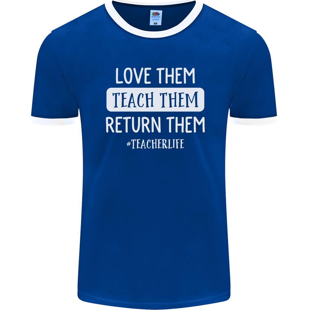 Whether you're a seasoned educator or just starting your teaching journey, this men's ringer t-shirt is sure to become a staple in your wardrobe. Let your personality shine through with the witty "Teacher Love Them, Return Funny Teaching" slogan emblazoned across the front, sparking conversations and smiles wherever you go.
