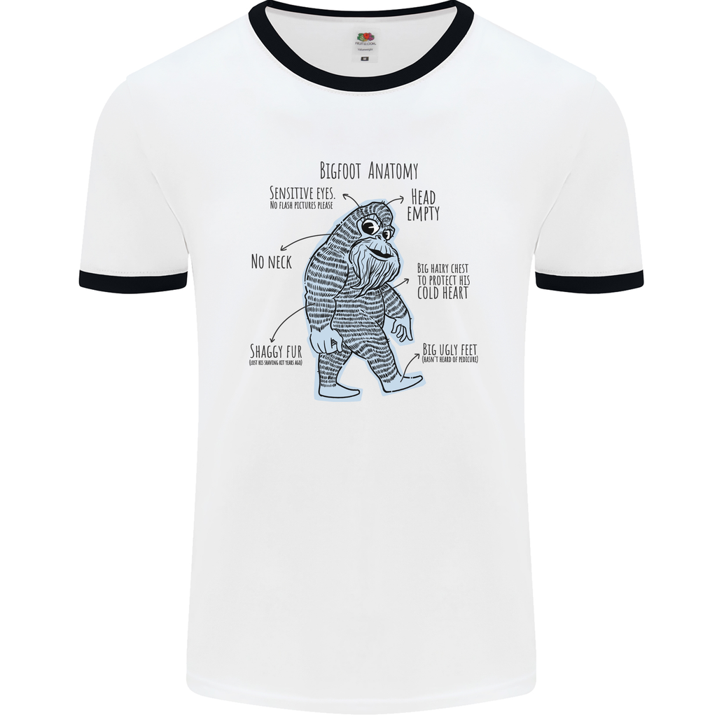 Welcome to the world of the elusive and mysterious Bigfoot with our exclusive mens ringer t-shirt, "The Anatomy of Bigfoot." This unique piece is not just a garment, but a statement piece that showcases your passion for the legendary creature that has captivated imaginations for generations.