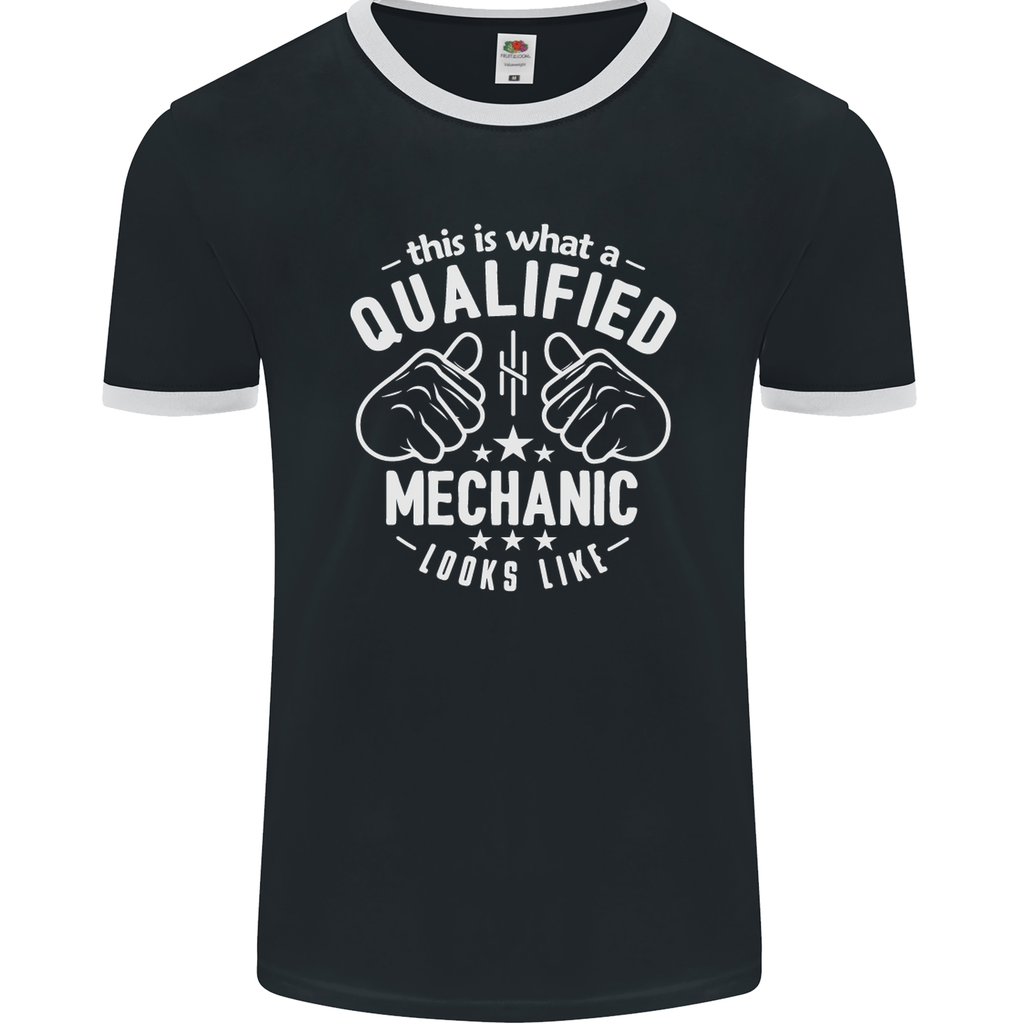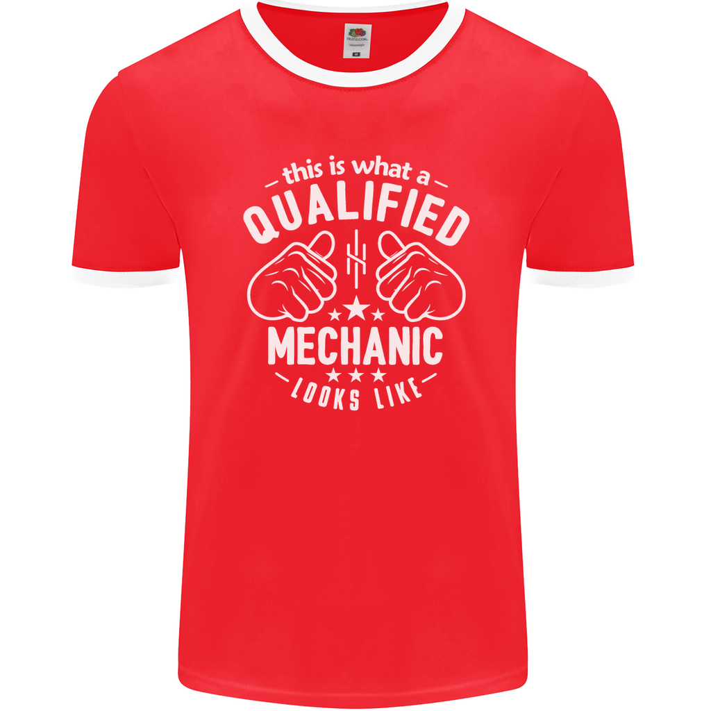 Indulge in quality, comfort, and personality – all in one shirt! Elevate your wardrobe with the "This Is What a Qualified Mechanic Looks Like Mens Ringer T-Shirt FotL" and make a statement wherever you go.