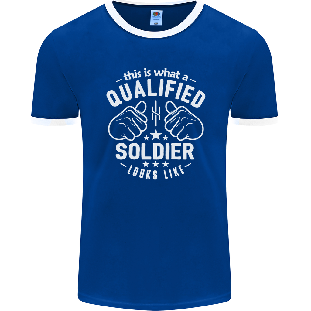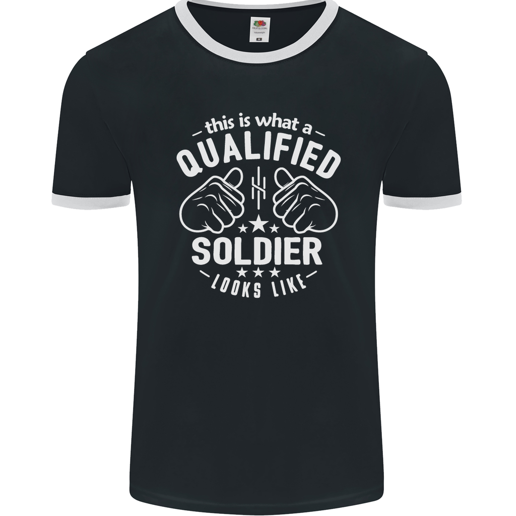 Make a statement without saying a word – let your outfit do the talking with the "This Is What a Qualified Soldier Looks Like" Men's Ringer T-Shirt. Order yours today and show your appreciation for the sacrifices and dedication of soldiers around the world.