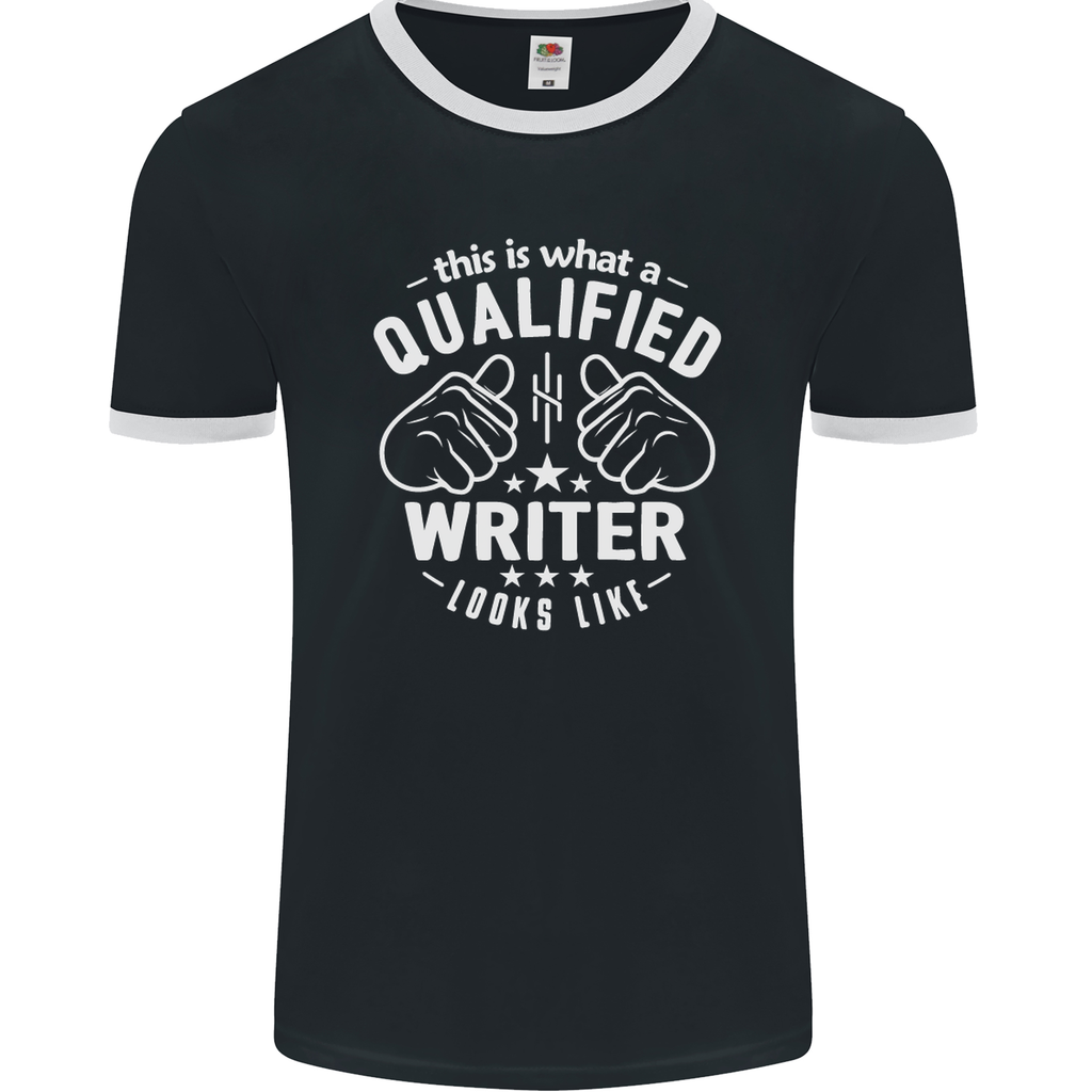 Elevate your wardrobe with the "This Is What a Qualified Writer Looks Like" Men's Ringer T-Shirt. It's not just a garment; it's a symbol of your dedication to the art of writing. Make a statement, stand out, and showcase your passion with every wear.