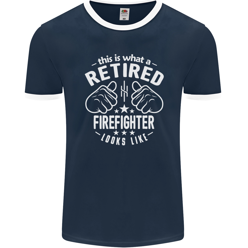 Elevate your wardrobe with the "This Is What a Retired Firefighter Looks Like" Men's Ringer T-Shirt by FotL today and wear it with pride as a tribute to the heroes who risked it all to keep us safe.