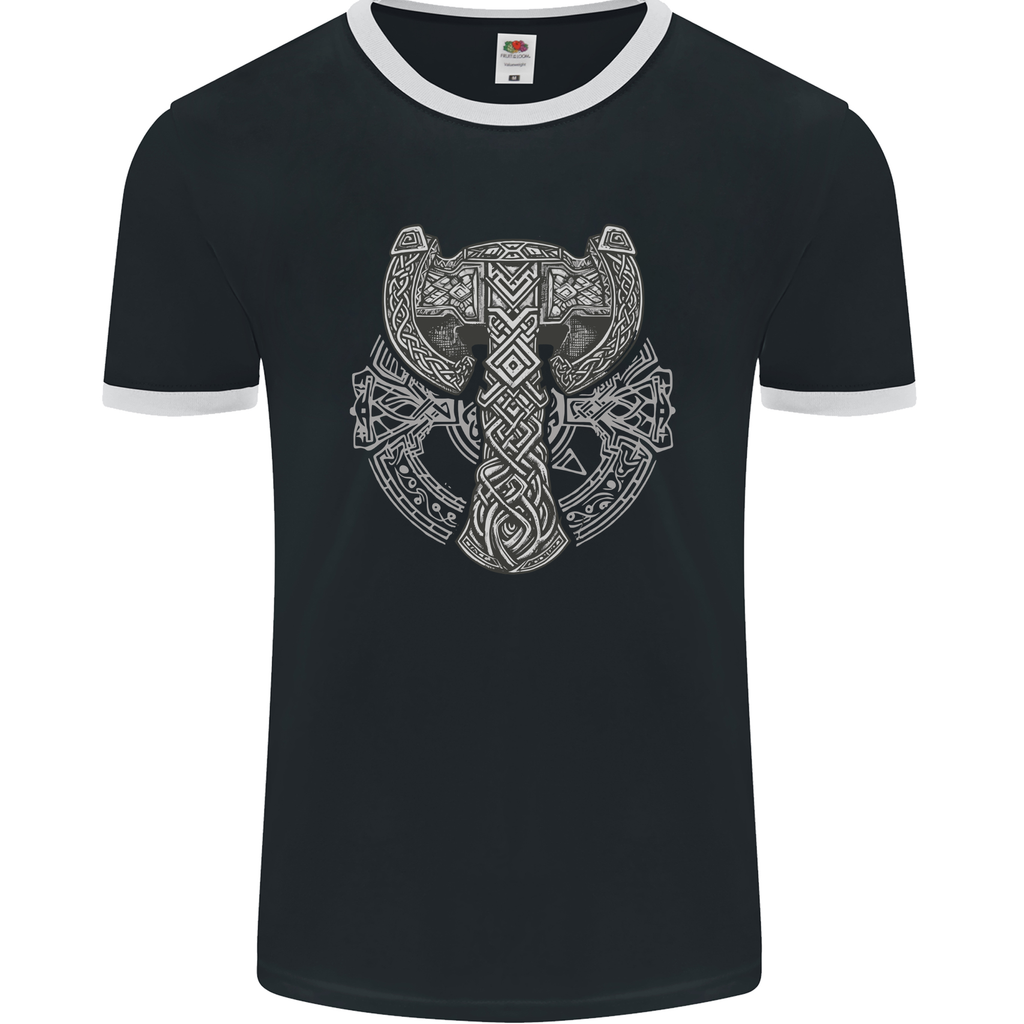 Introducing the Thor Hammer Viking Symbols Odin Valhalla Mens Ringer T-Shirt from FotL, a perfect blend of style, comfort, and a nod to Norse mythology. This striking t-shirt is not just an everyday wear; it is a statement piece that resonates with those who revere the legends of Odin and the fierce warriors of Valhalla. Whether you're a history enthusiast, a fan of Viking culture, or simply want to showcase your individuality, this t-shirt is designed for you.
