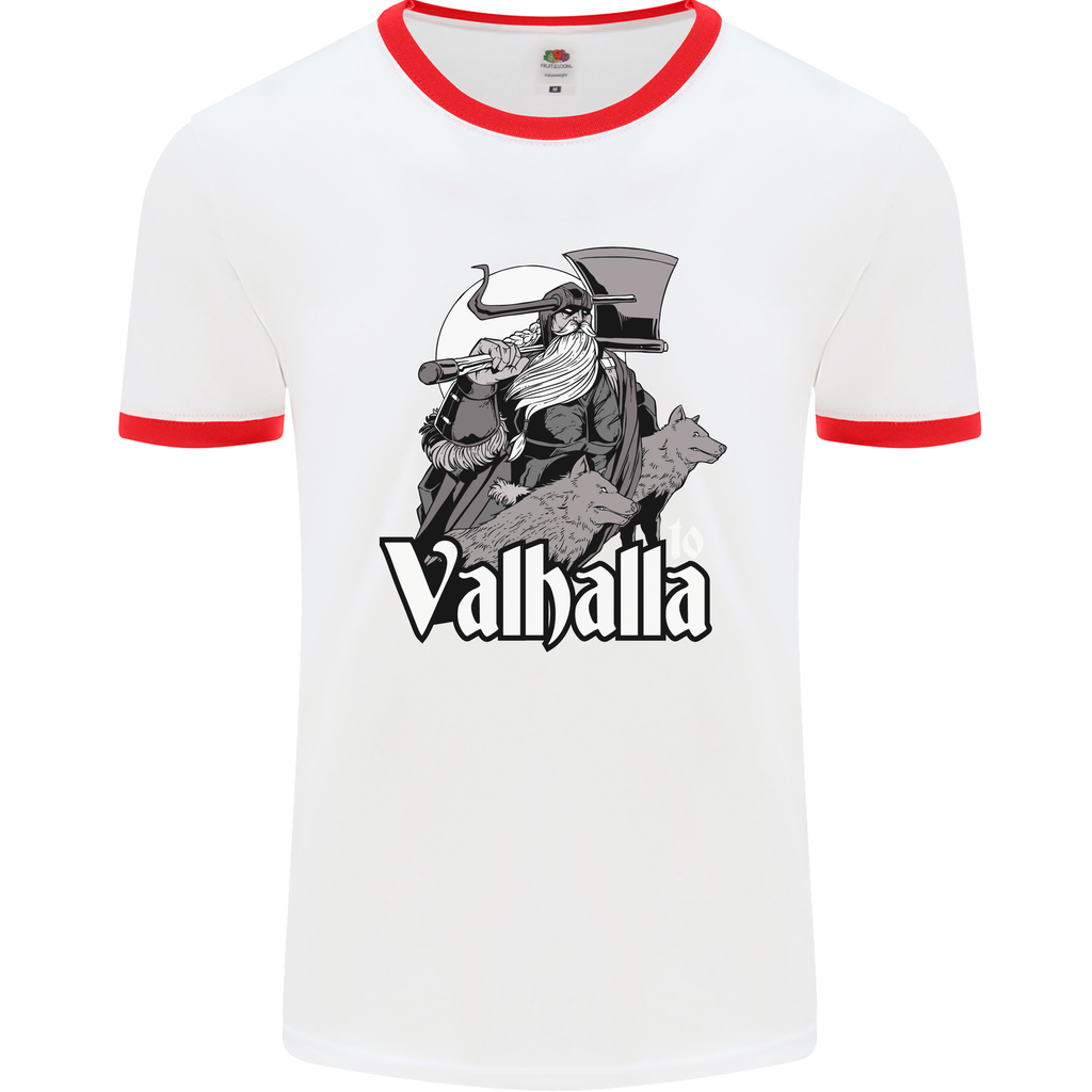 Embrace your inner warrior spirit with the fierce and stylish To Valhalla Viking Warrior Odin Mens Ringer T-Shirt. This unique piece of apparel pays homage to the legendary Norse figure Odin, known for his bravery and strength in battle.
