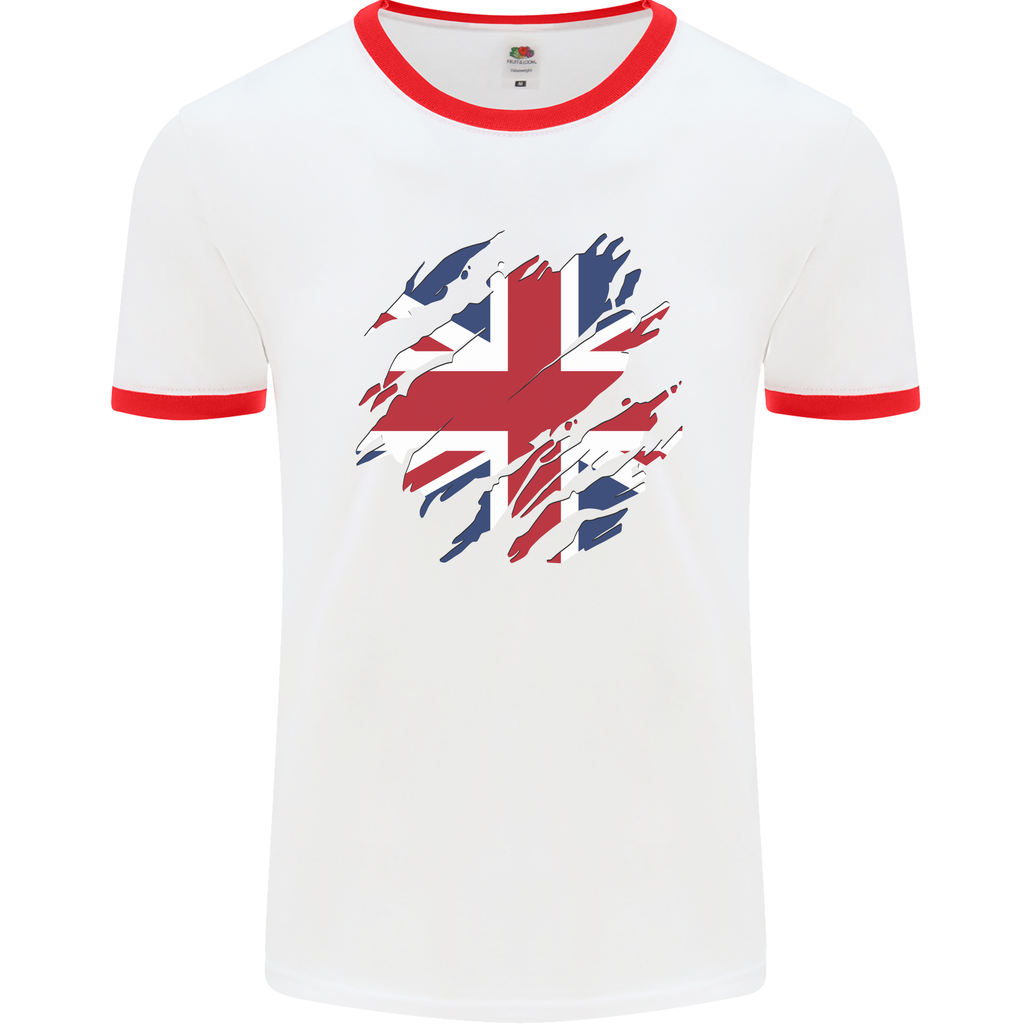 Torn British Flag Union Jack Britain Mens Ringer T-Shirt