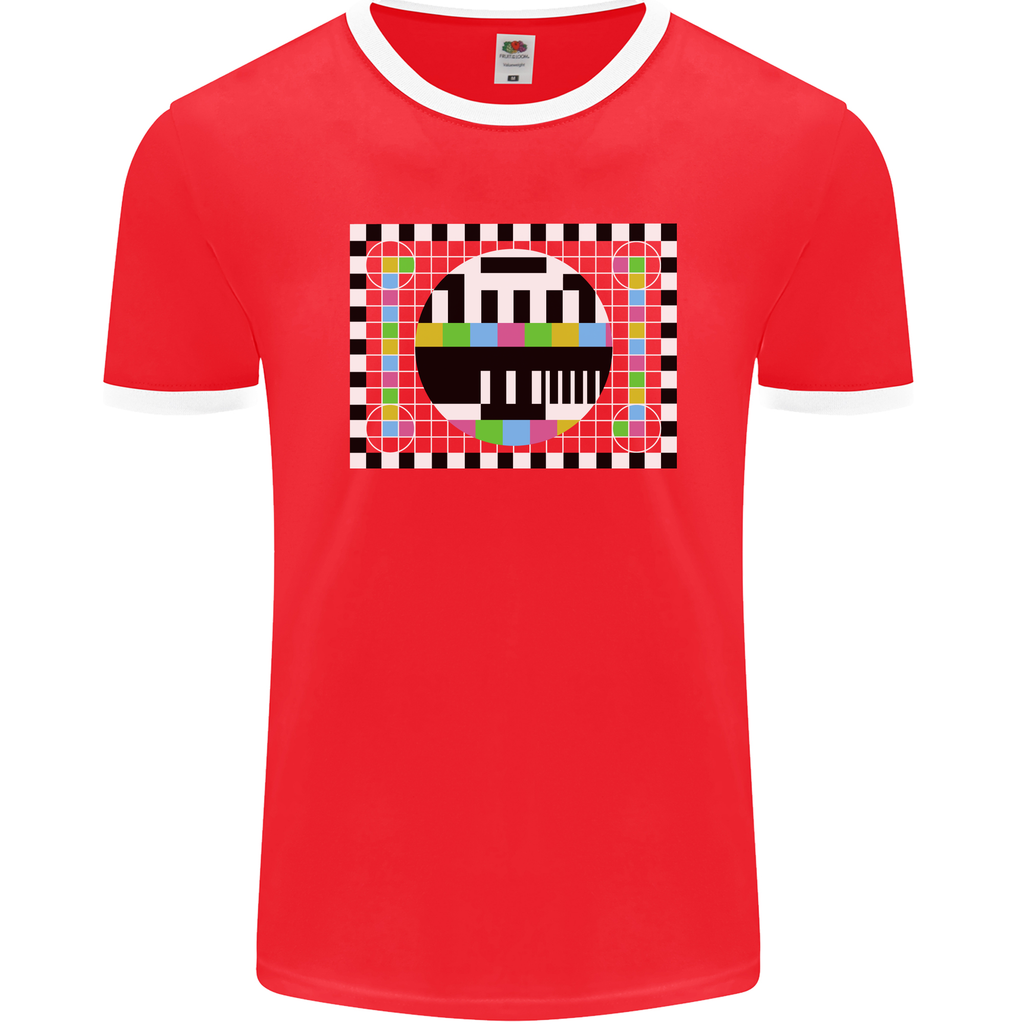 - Bold Retro Design: Stand out from the crowd with the iconic TV test pattern emblazoned on the front of this ringer t-shirt. The vibrant colours and striking graphics capture the spirit of classic television nostalgia.