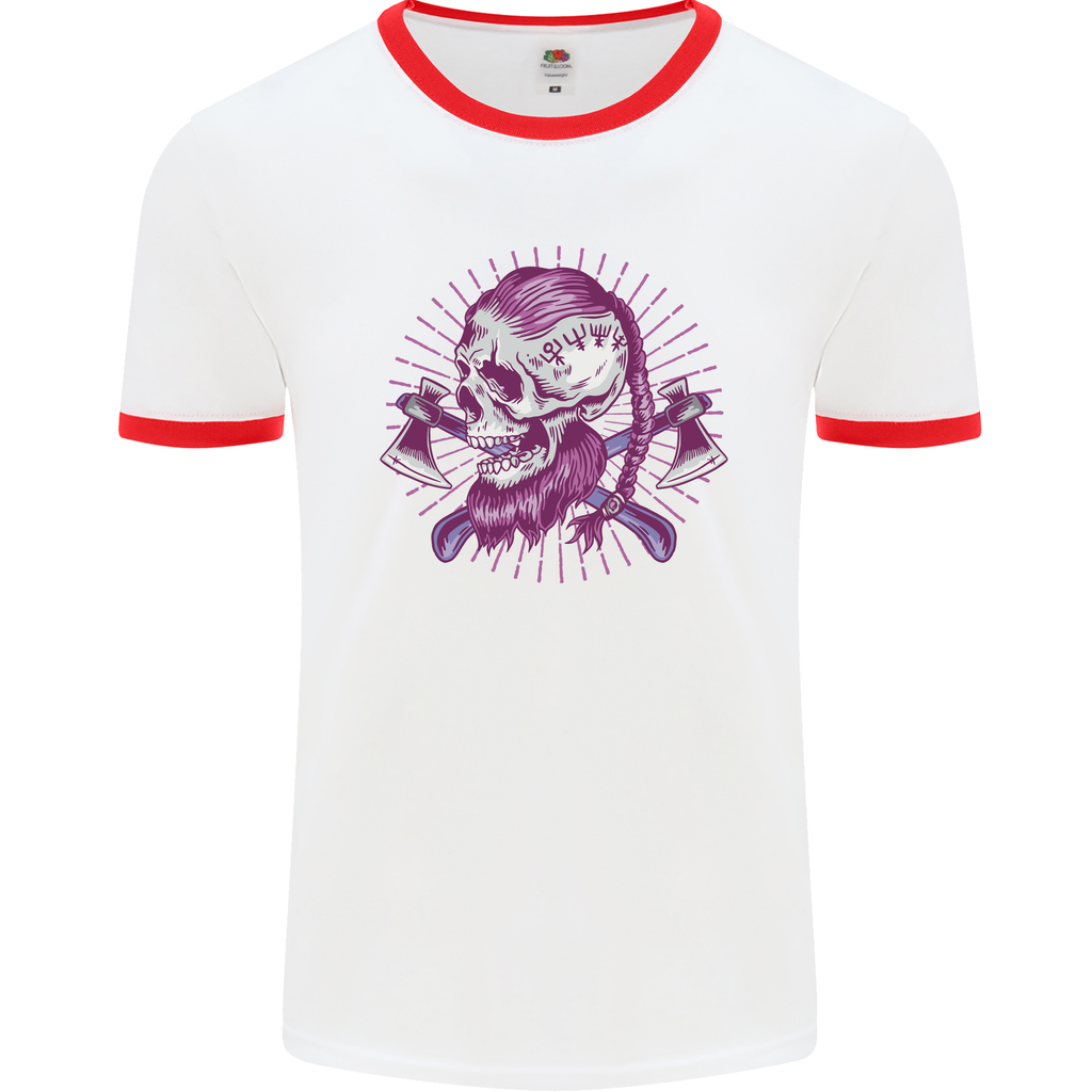 Whether you wear it for a casual outing, a rock concert, or a themed party, this Viking Axe Skull Men's Ringer T-Shirt is designed to make you stand out with its intricate details and eye-catching design.