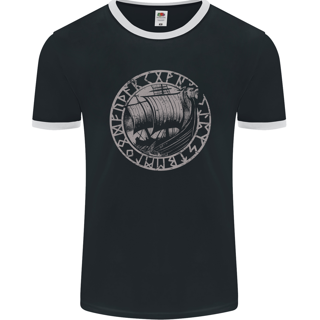 The Viking Ship With Norse Text Mens Ringer T-Shirt is not just a piece of clothing; it's a statement of individuality and passion for ancient lore. It makes a fantastic gift for yourself or a special someone who treasures history and mythology. Match it with your favourite jeans or shorts for a laid-back look that embodies adventure and courage.