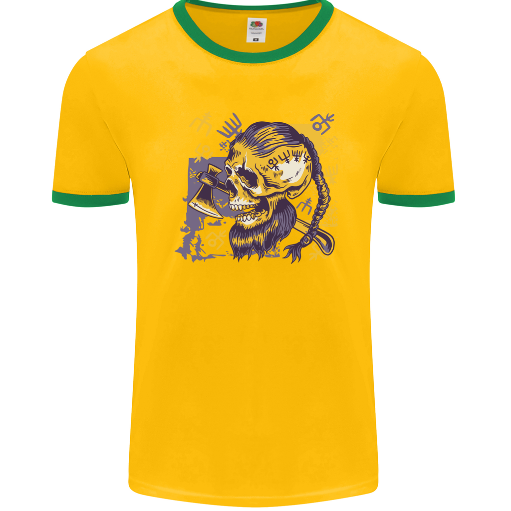 Perfect for casual outings or adding an edge to your everyday look, the Viking Symbols Skull Mens Ringer T-Shirt is a must-have for those who dare to be different. Elevate your style game and make a statement with this unique piece of apparel.