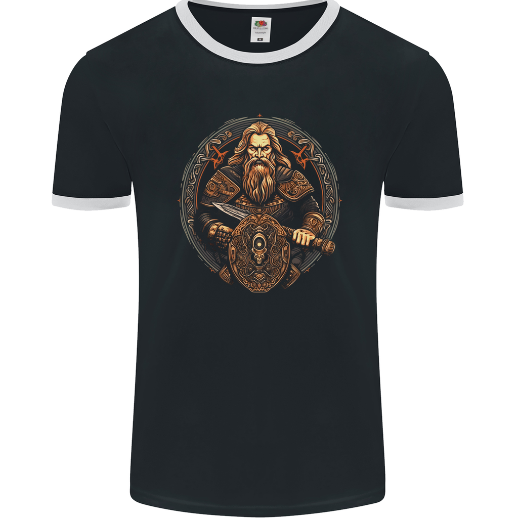 Viking Warrior With Sword and Shield Mens Ringer T-Shirt FotL