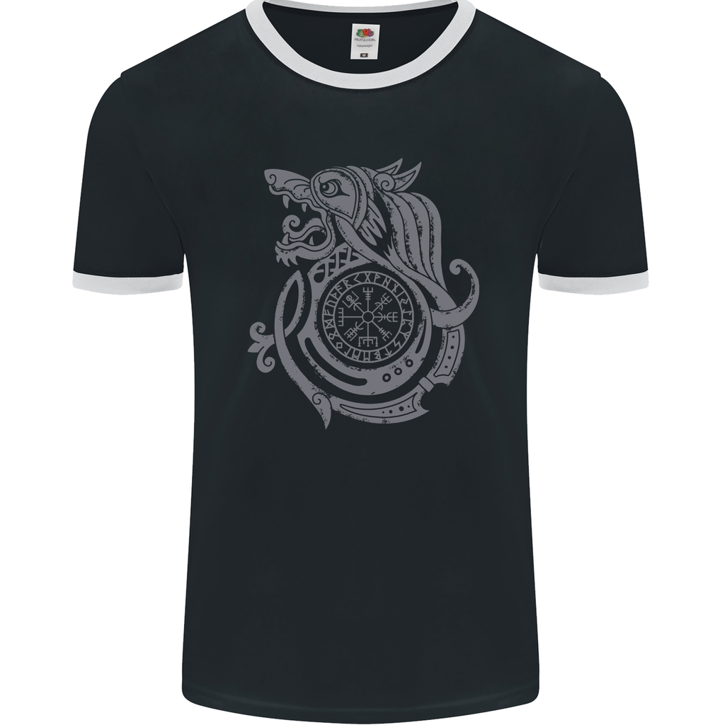 Unleash your inner warrior with the Viking Wolf With Vegvisir Symbol Mens Ringer T-Shirt from Fruit of the Loom. This striking t-shirt combines Norse mythology and modern style to create a unique piece that is perfect for any casual outing or as part of a statement outfit. The iconic Vegvisir symbol, often referred to as the Viking compass, represents guidance and protection, making this tee not just a piece of clothing but a symbol of strength and direction.