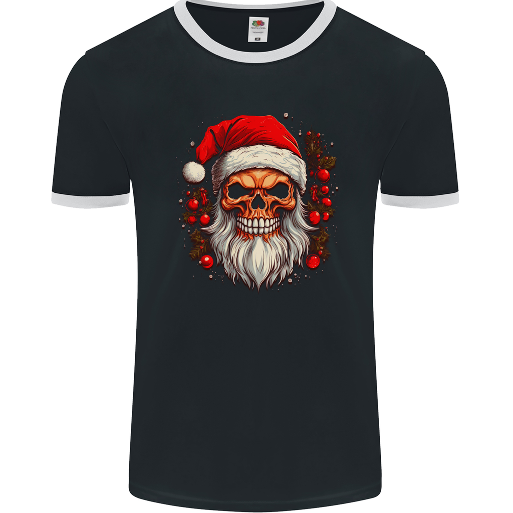Welcome to the world of unique festive fashion with our Xmas Santa Skull Christmas Bah Humbug Biker Men's Ringer T-Shirt from FotL. Embrace the spirit of the season with a twist by donning this edgy and bold t-shirt that fuses the iconic symbols of Santa Claus and a skull, making it a standout choice for expressing your individual style during the holiday season.