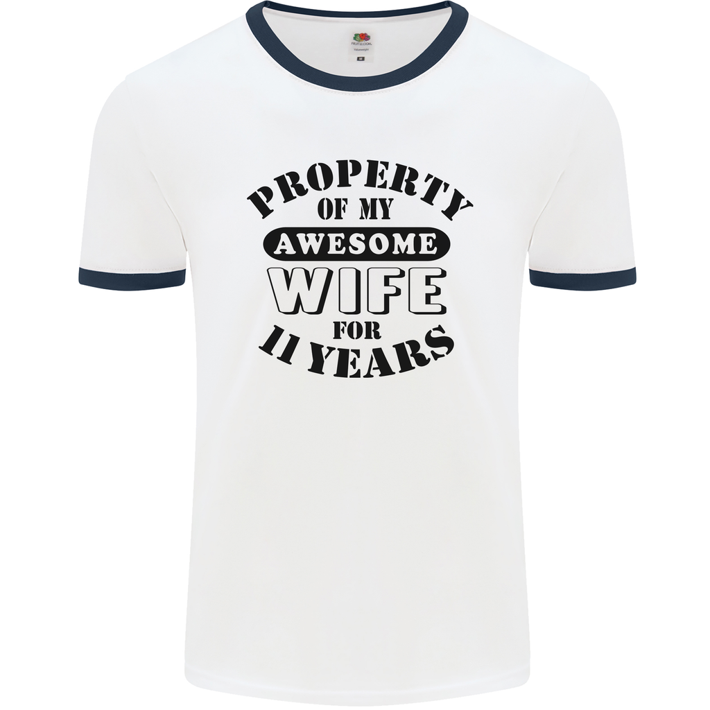 Mark this special occasion with a dash of fun and a sprinkle of laughter with this 11th Wedding Anniversary Funny Ringer T-Shirt. It's not just a piece of clothing; it's a symbol of your enduring love and the joy of spending 11 wonderful years with your partner.