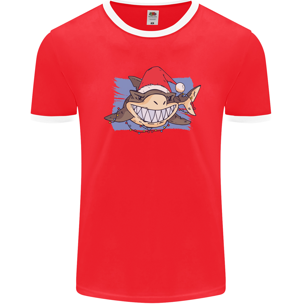 A Christmas Shark Wearing an Xmas Hat Mens Ringer T-Shirt FotL