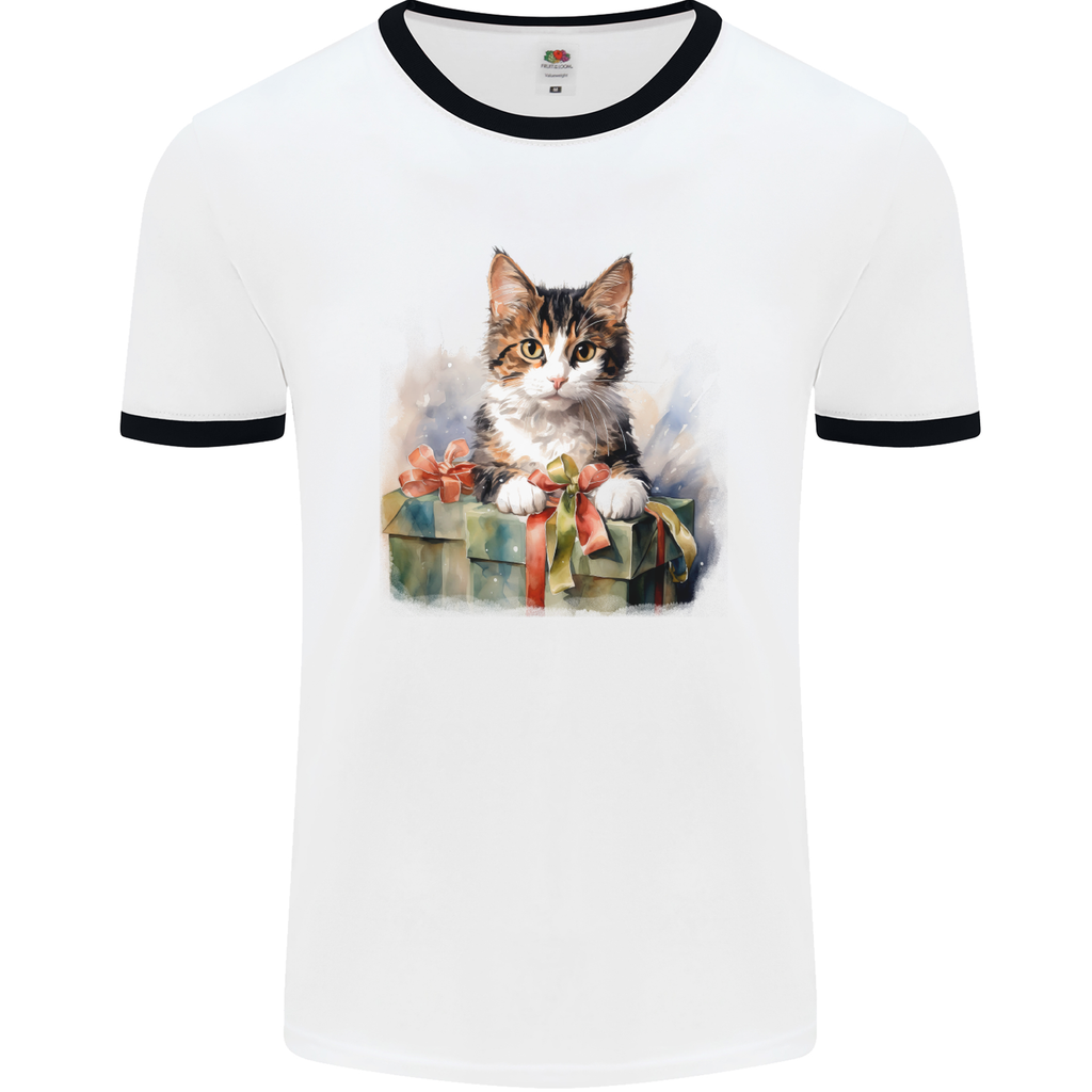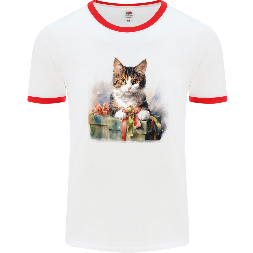 A Cute Cat With a Present Christmas Xmas Mens Ringer T-Shirt