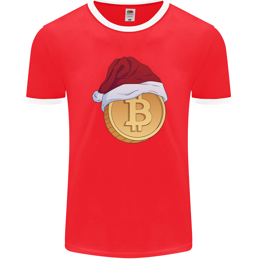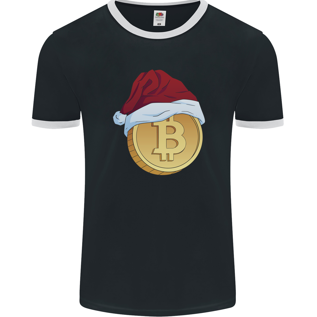 Christmas Bitcoin Wearing a Christmas Hat Crypto Mens Ringer T-Shirt FotL