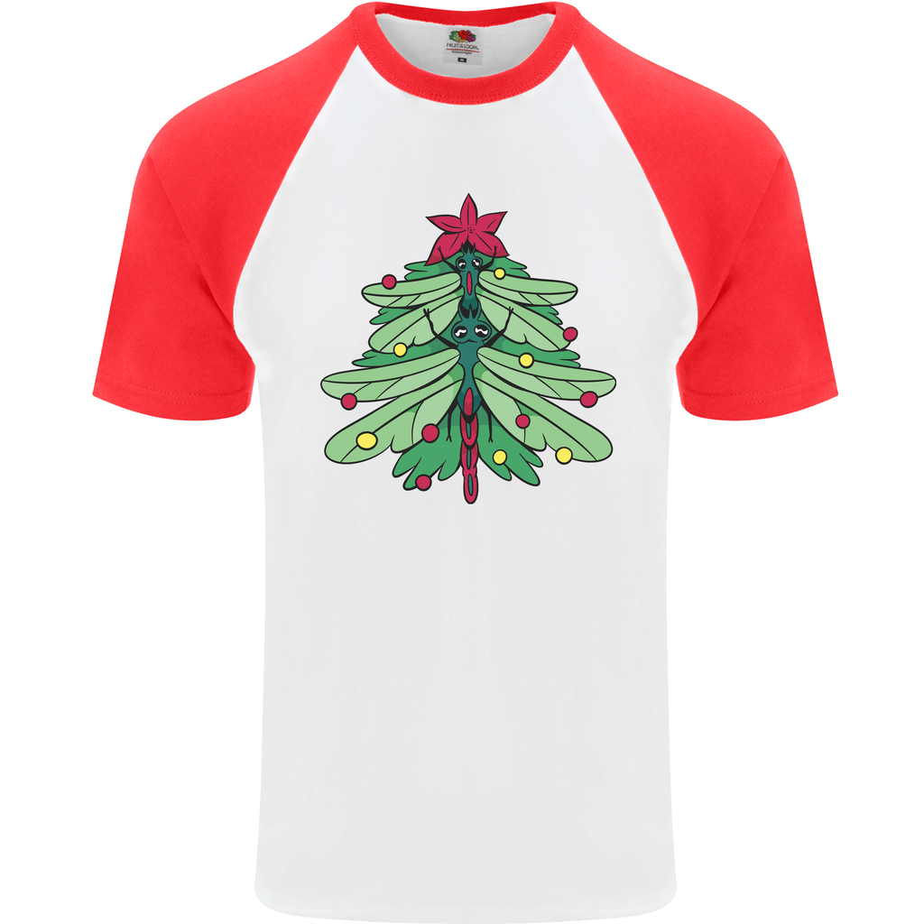 Christmas Dragonfly Xmas Tree Mens S/S Baseball T-Shirt