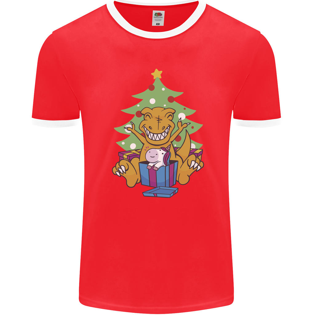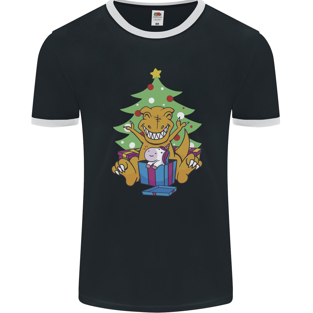 Christmas T-Rex & Unicorn Funny Xmas Gift Mens Ringer T-Shirt FotL