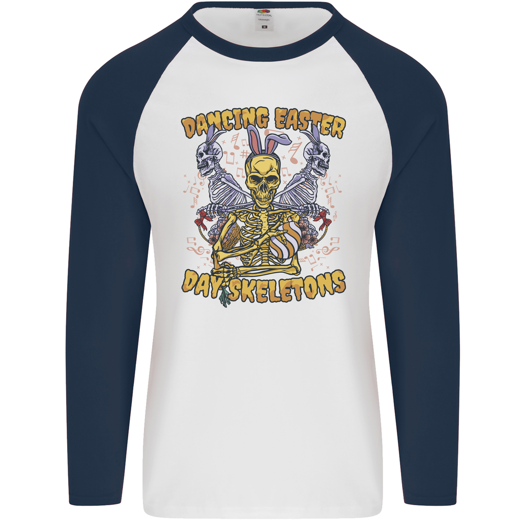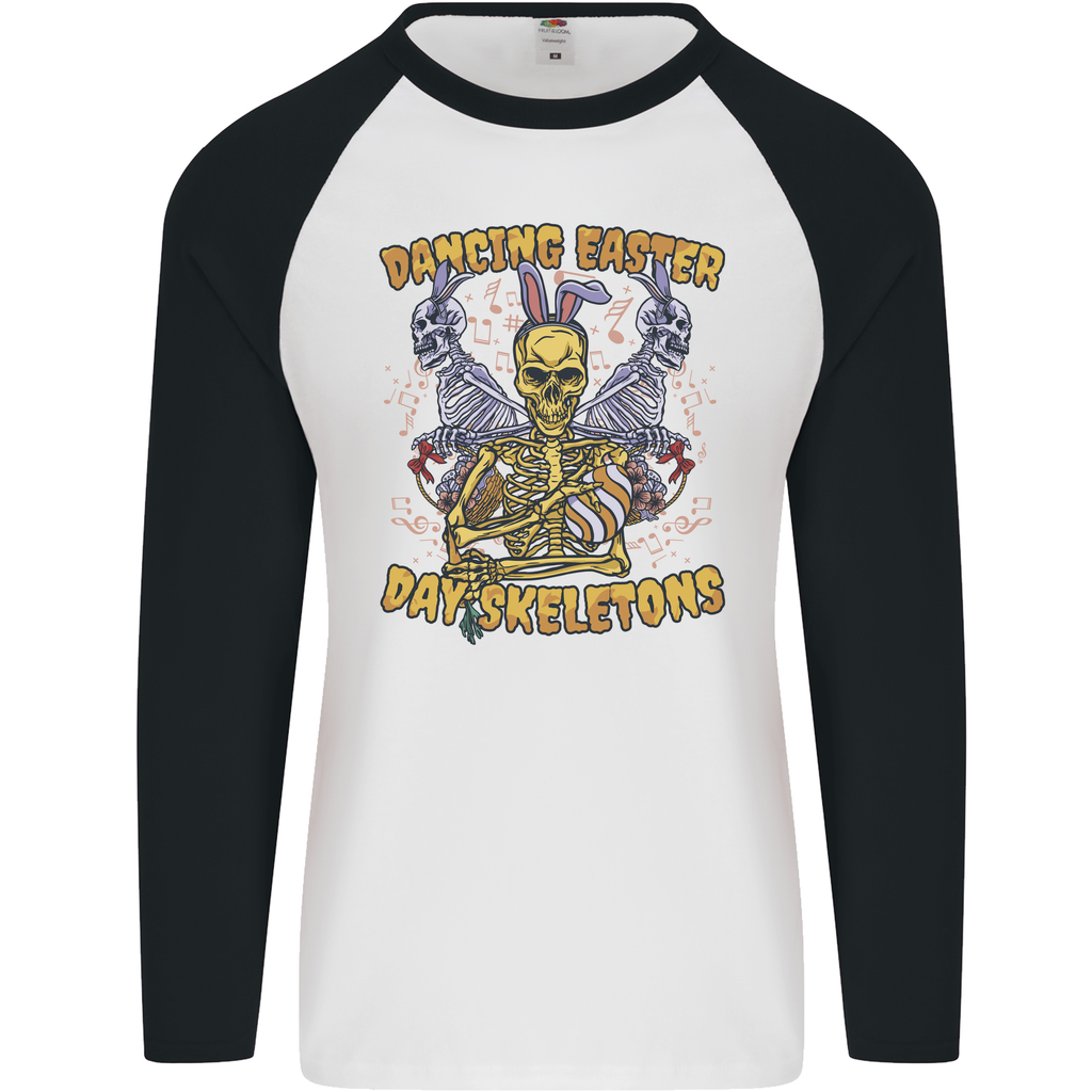 Embrace the festive spirit this Easter with our Dancing Easter Day Skeletons Skulls Men's Long Sleeve Baseball T-Shirt. This unique and eye-catching shirt perfectly blends playful design with comfort, making it an ideal choice for your holiday celebrations.
