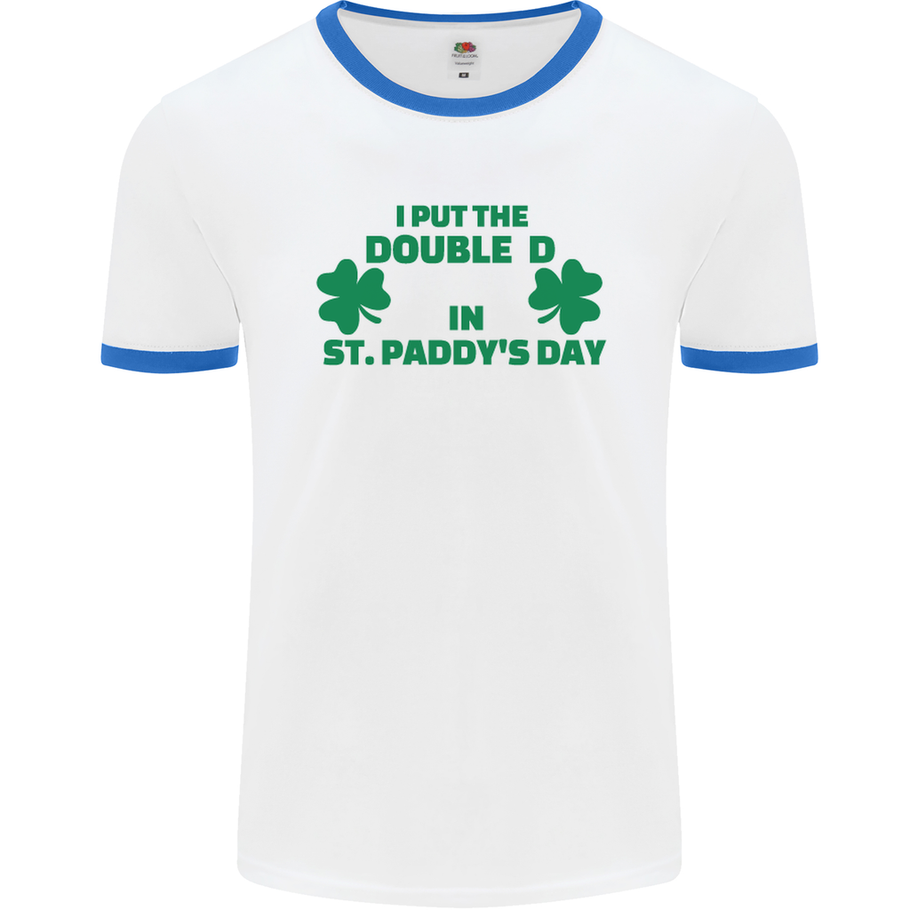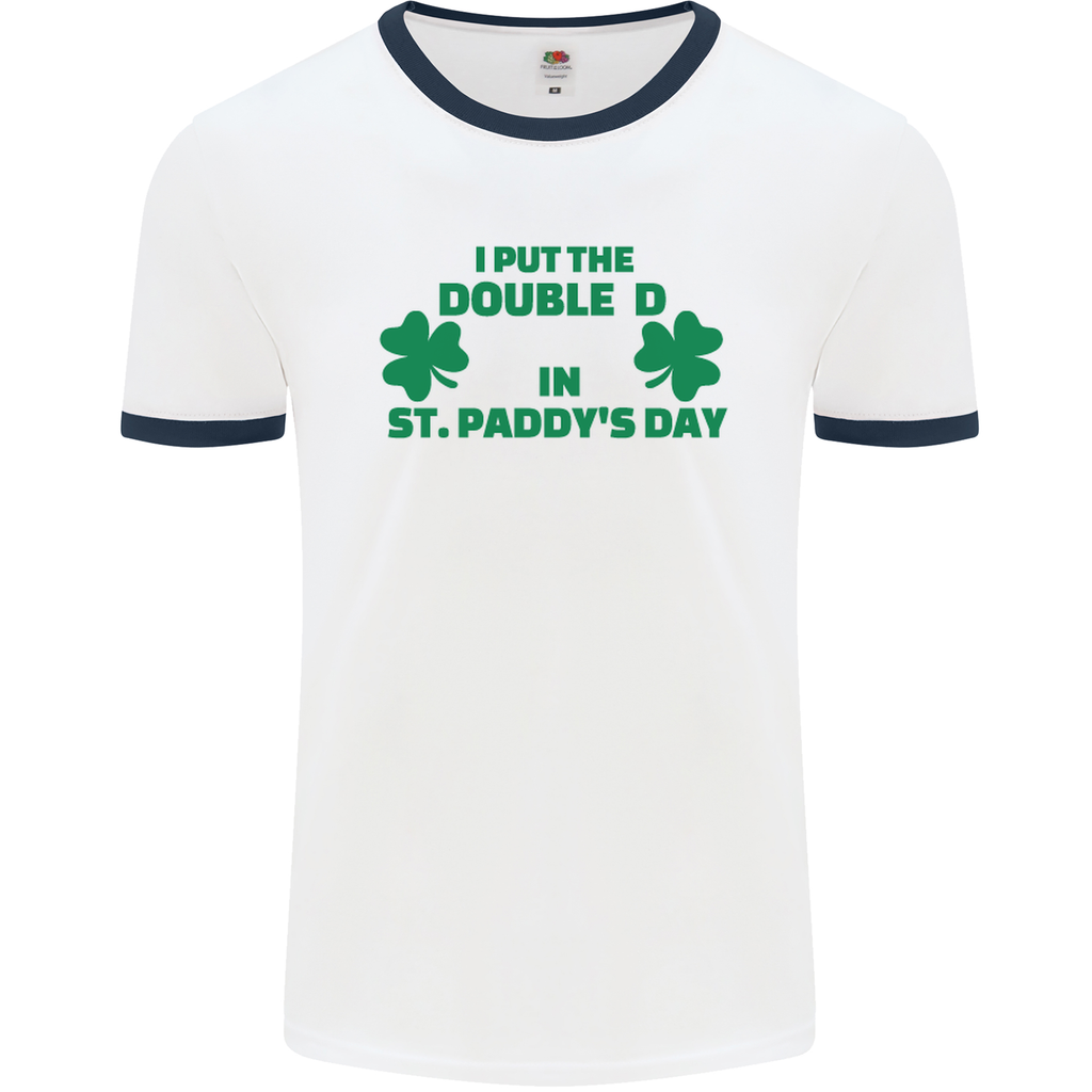 Welcome to this wildly humorous and attention-grabbing St. Paddy's Day ringer tee that's bound to draw smiles and laughter wherever you go. Stand out in style and unleash your playful side with the "I Put the DD in St. Paddy's Day" design that's sure to turn heads and spark conversations.