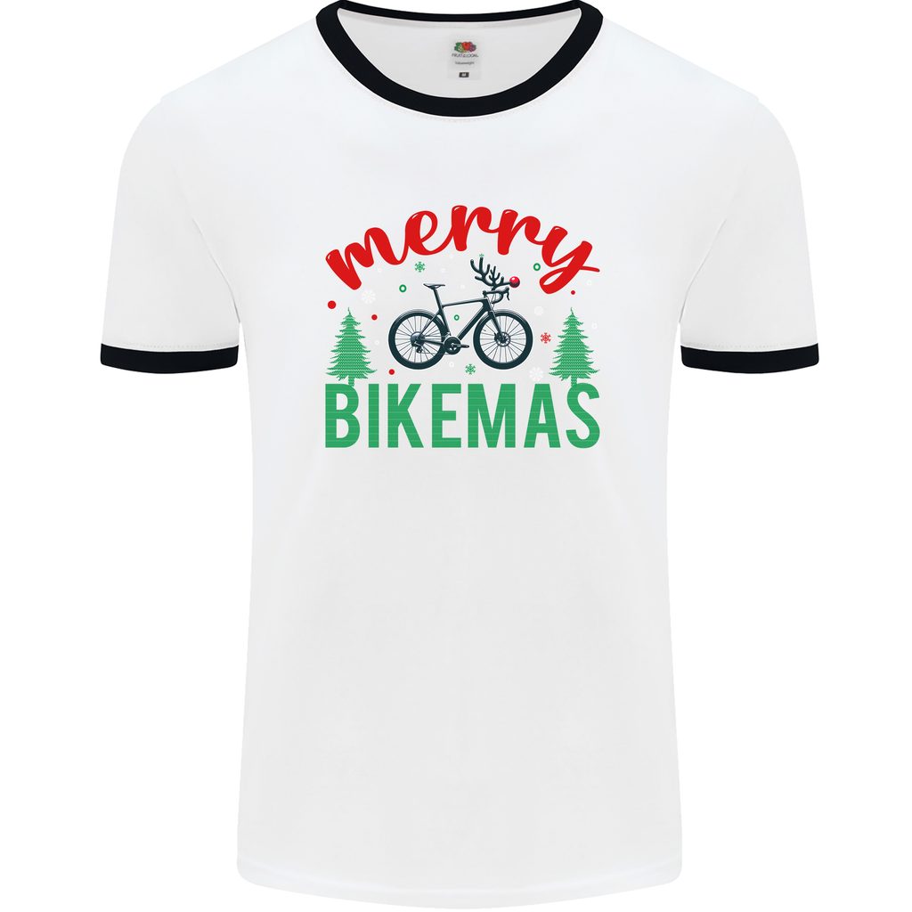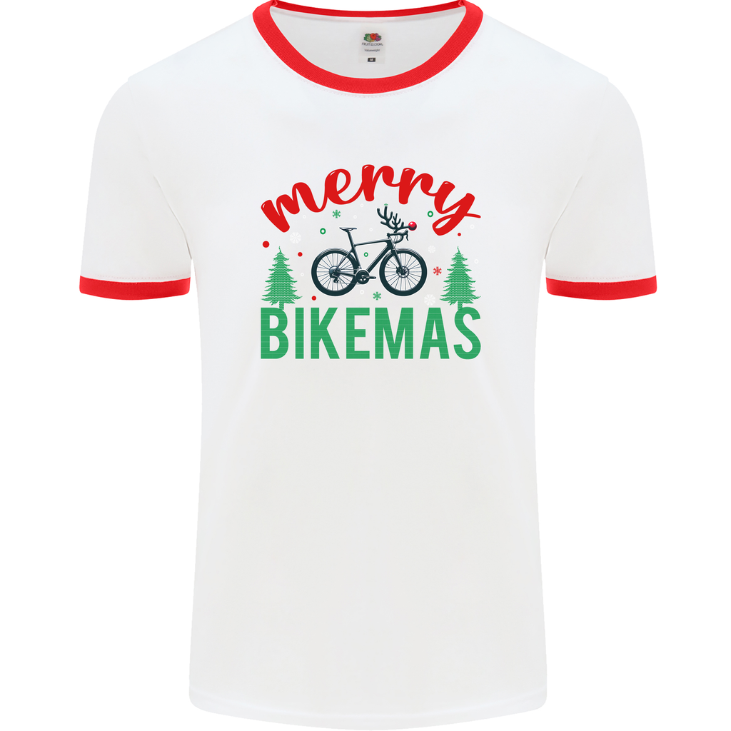 Merry Bikemass Funny Cycling Bicycle Xmas Bike Mens Ringer T-Shirt