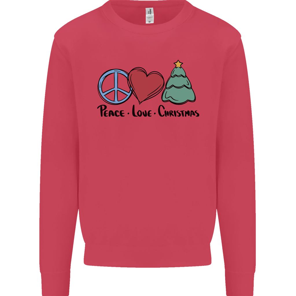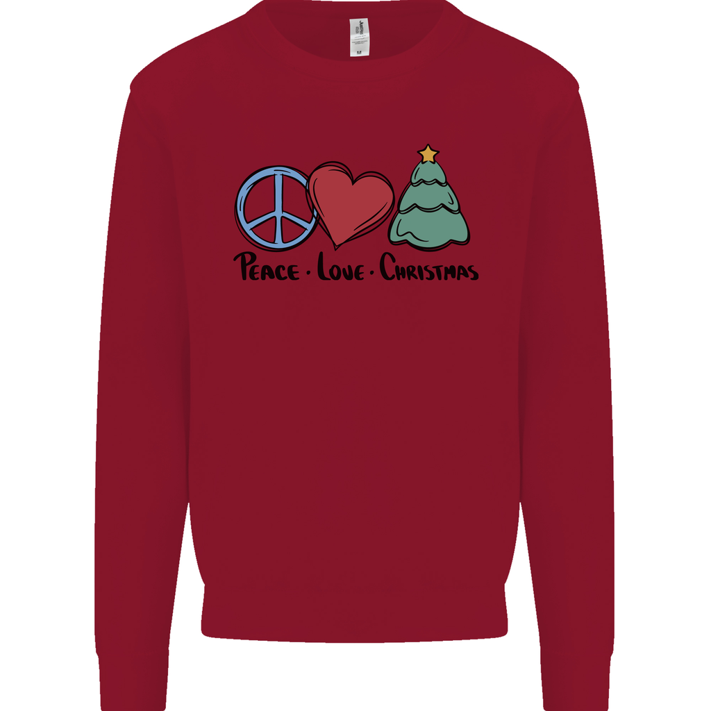 Crafted from a soft and breathable fabric, our sweatshirt ensures that kids stay comfortable all day long. The delightful print featuring the words "Peace," "Love," and "Christmas" adds a vibrant and joyful touch, making it an instant favourite for your child. This jumper not only looks fantastic but also carries a meaningful message that spreads the true spirit of the holiday season.