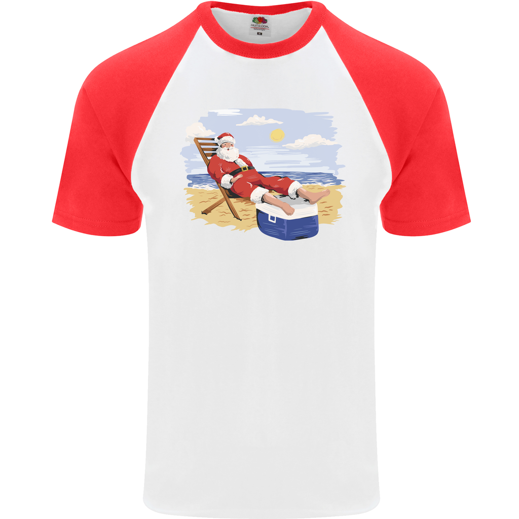 Santa at the Beach Christmas Summer Xmas Holiday Mens S/S Baseball T-Shirt