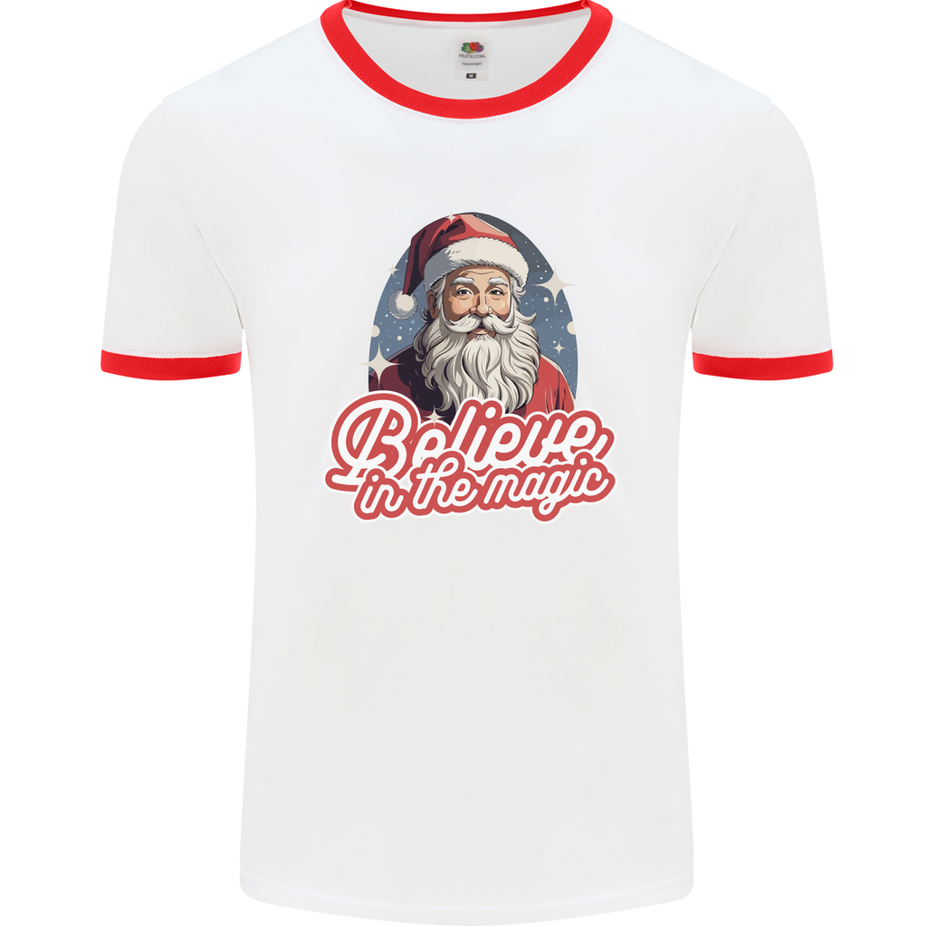 Embrace the joy and spirit of the festive season with our Santa Believe in the Magic Christmas Xmas Men's Ringer T-Shirt. Designed for those who adore Christmas, this stylish t-shirt combines comfort and creativity, making it the perfect addition to your holiday wardrobe. Whether you're attending a festive gathering, decorating your home, or simply enjoying a cozy night in, this shirt will keep you feeling merry and bright.