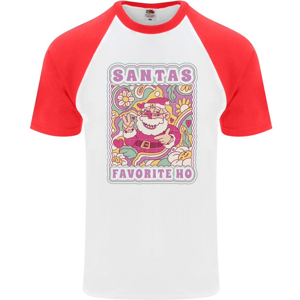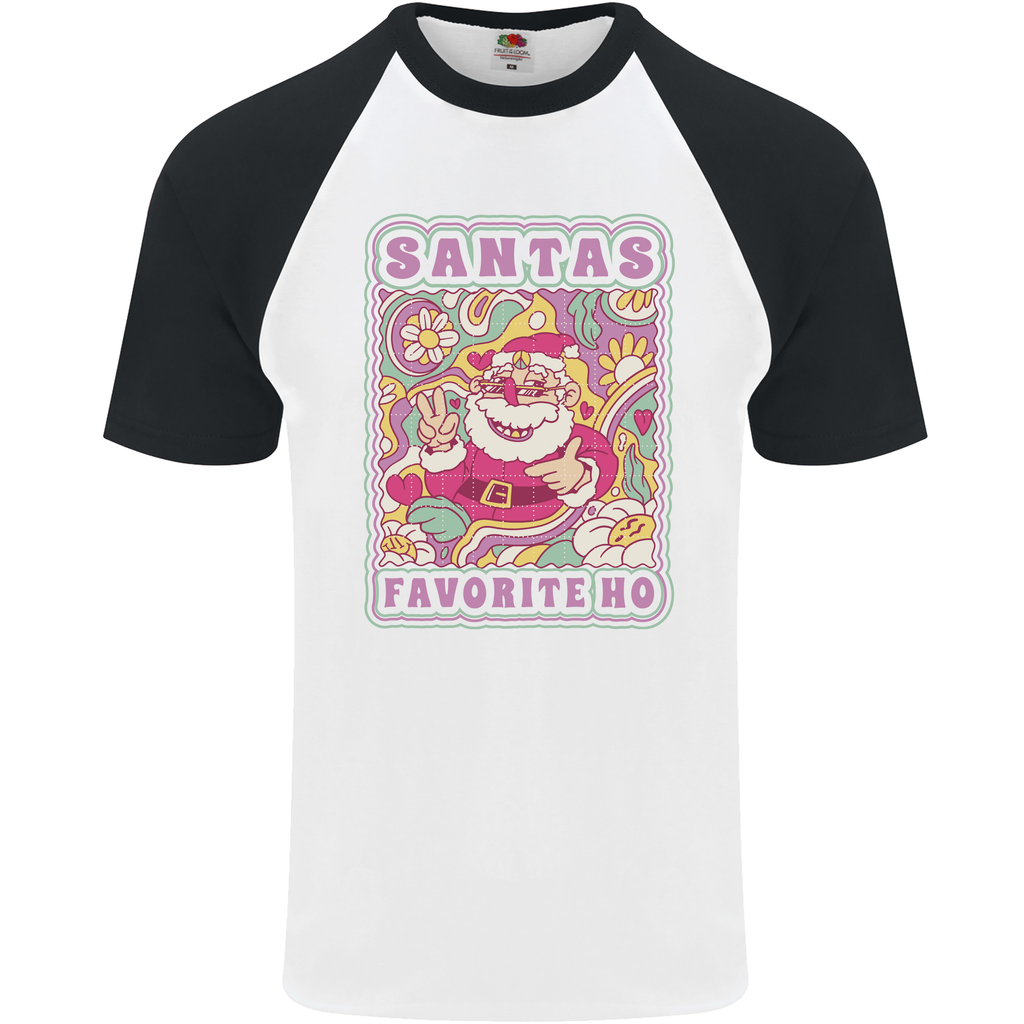 Santa's Favourite HO Funny Hippy Trippy Christmas Mens S/S Baseball T-Shirt