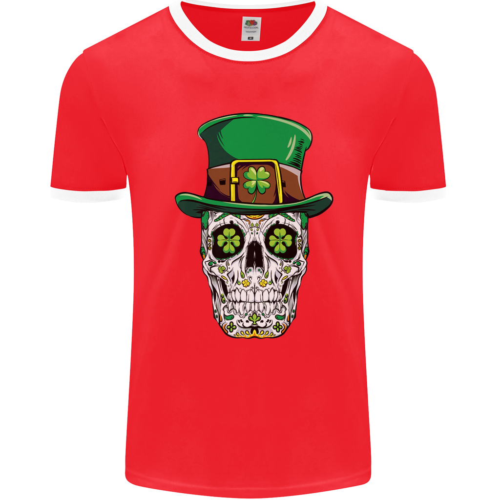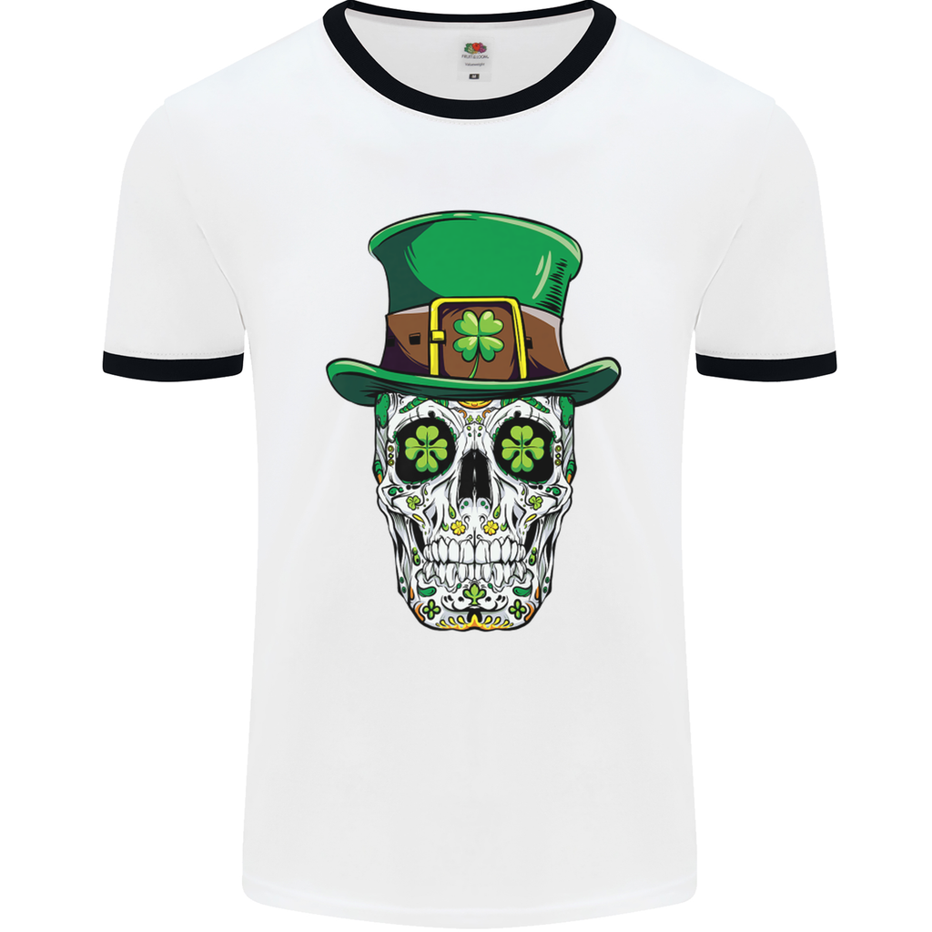 Welcome to the unique world where St. Patrick's Day and the Day of the Dead come together in vibrant harmony with this striking Sugar Skull Men's Ringer T-Shirt. Embrace individuality and style with this eye-catching piece that celebrates two distinct cultural holidays in one design.