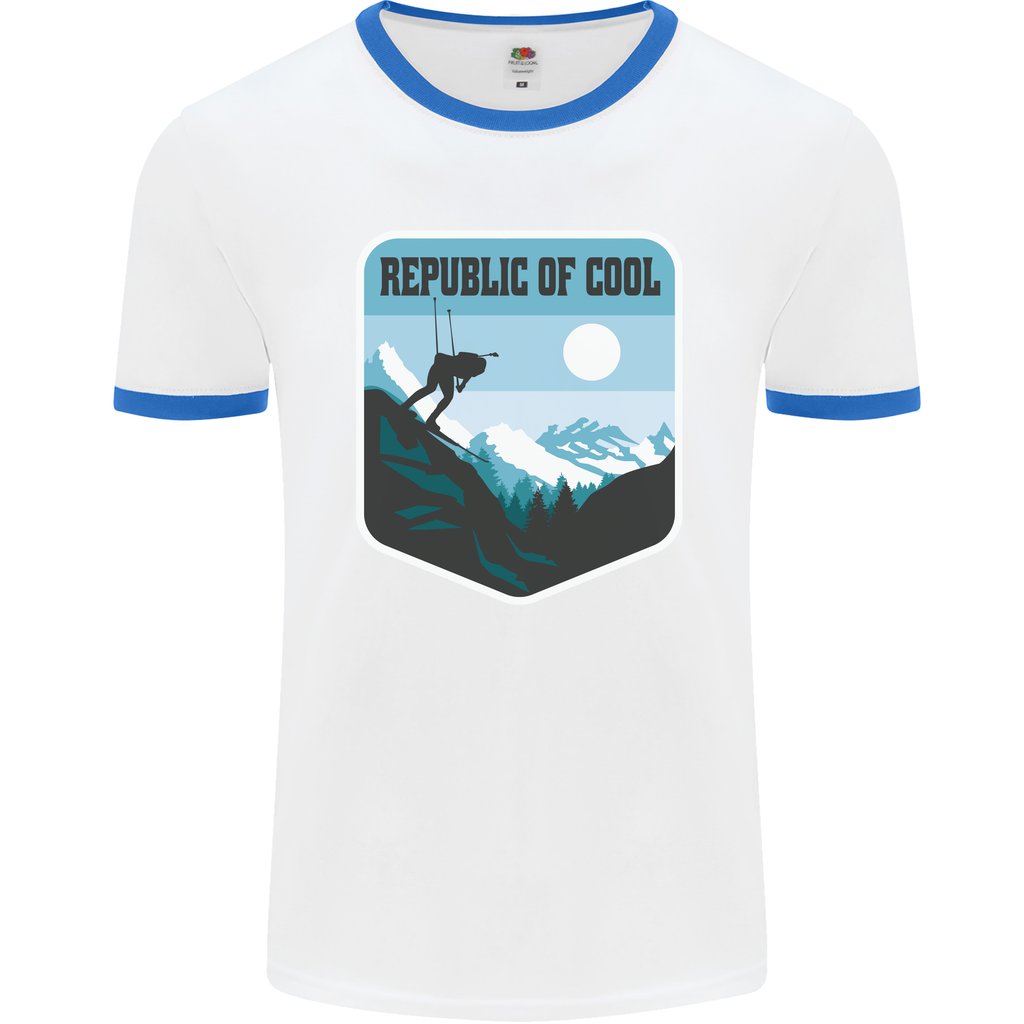 Republic of Cool Skiing Skier Ski Mens Ringer T-Shirt