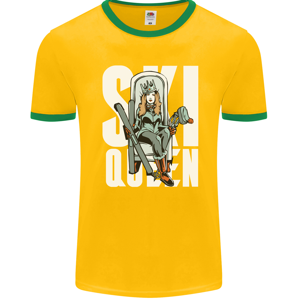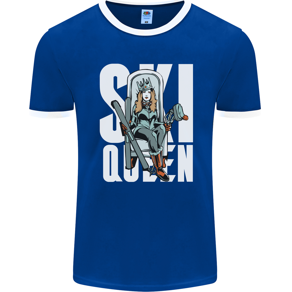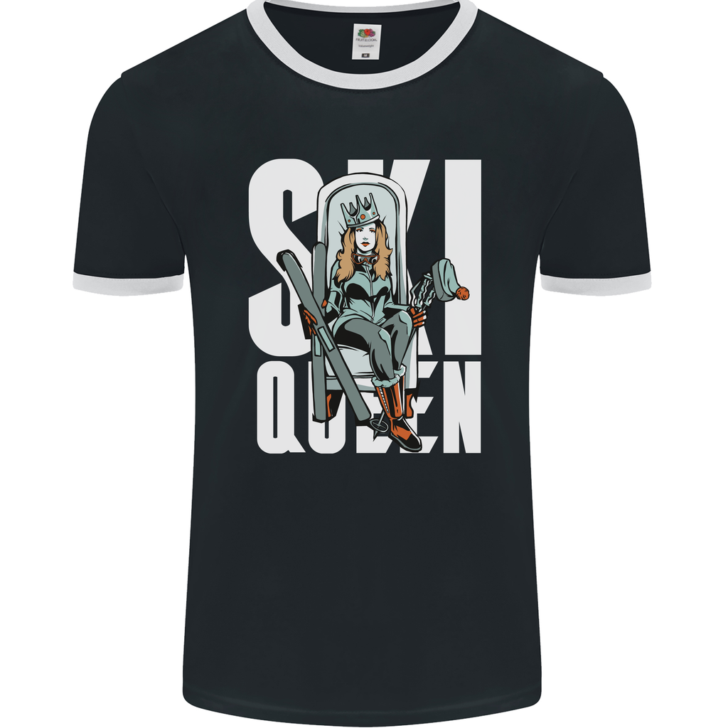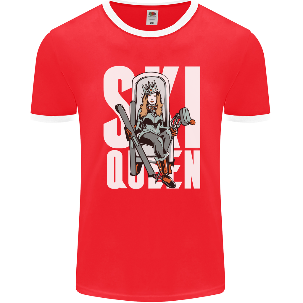 Step up your winter sports style game with the Ski Queen Funny Skiing Men's Ringer T-Shirt by FotL. This playful tee is designed for those who love hitting the slopes and making a statement while doing so.