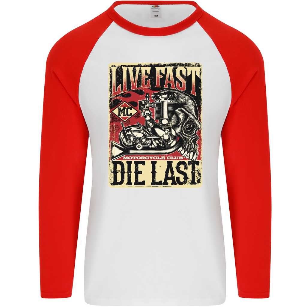 Live Fast Motorcycle Motorbike Biker Chopper Mens L/S Baseball T-Shirt