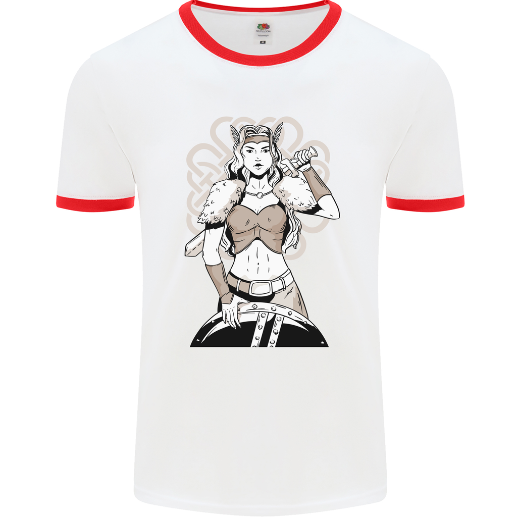 Welcome to the exciting world of the Female Viking Shield Maiden Warrior Men's Ringer T-Shirt! This unique and striking t-shirt is perfect for those who appreciate a bold and fearless style.