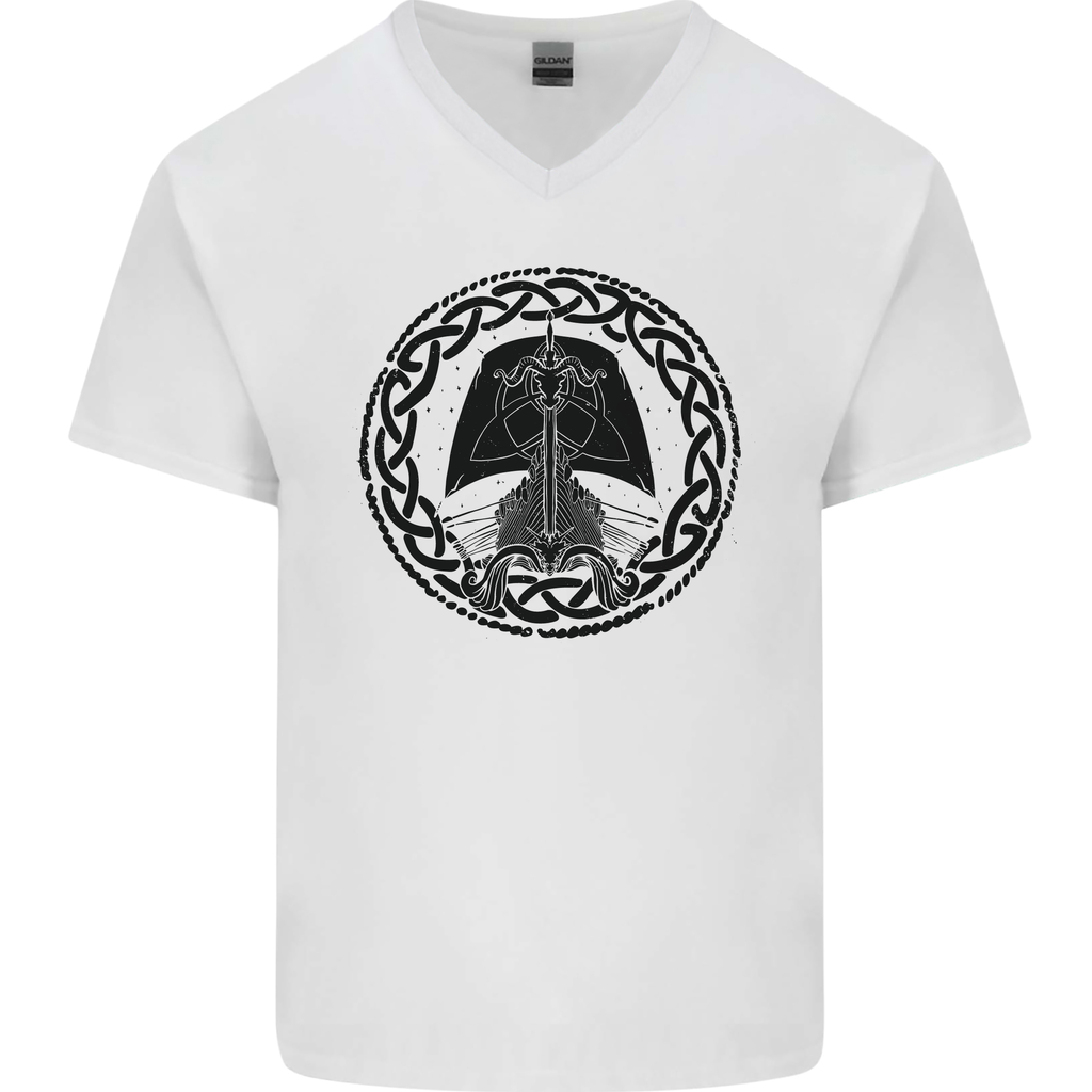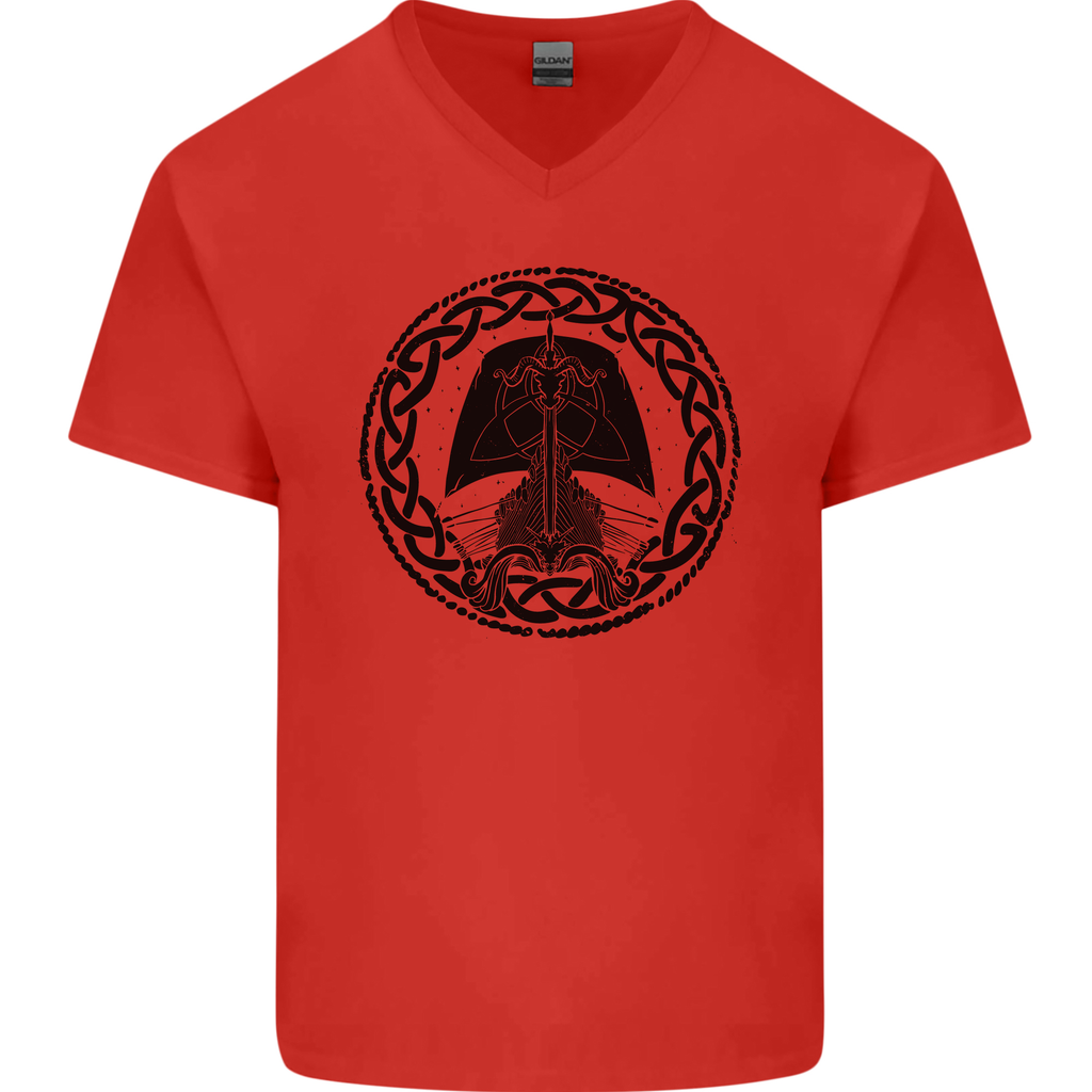 A Viking Ship Mens V-Neck Cotton T-Shirt