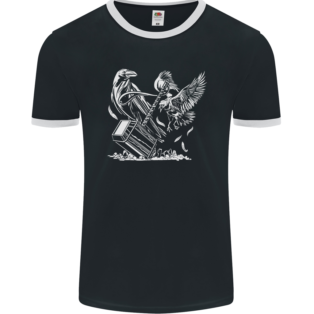 Stand out in style and let your inner Viking spirit shine with the Viking Hammer and Raven Men's Ringer T-Shirt. Embrace the power and mystique of the ancient Norse warriors with this striking piece of apparel.