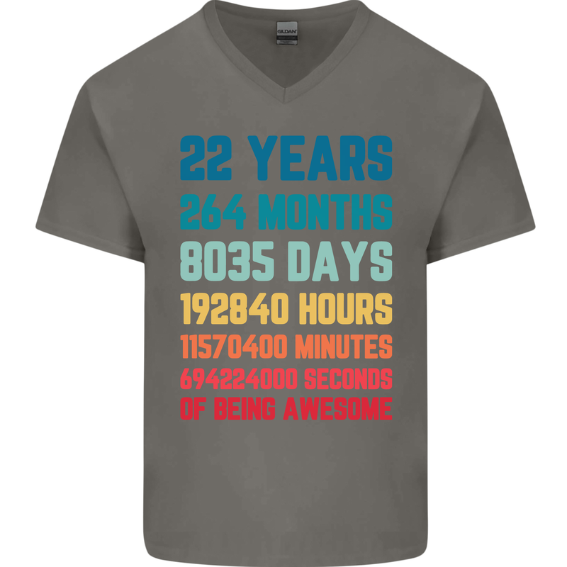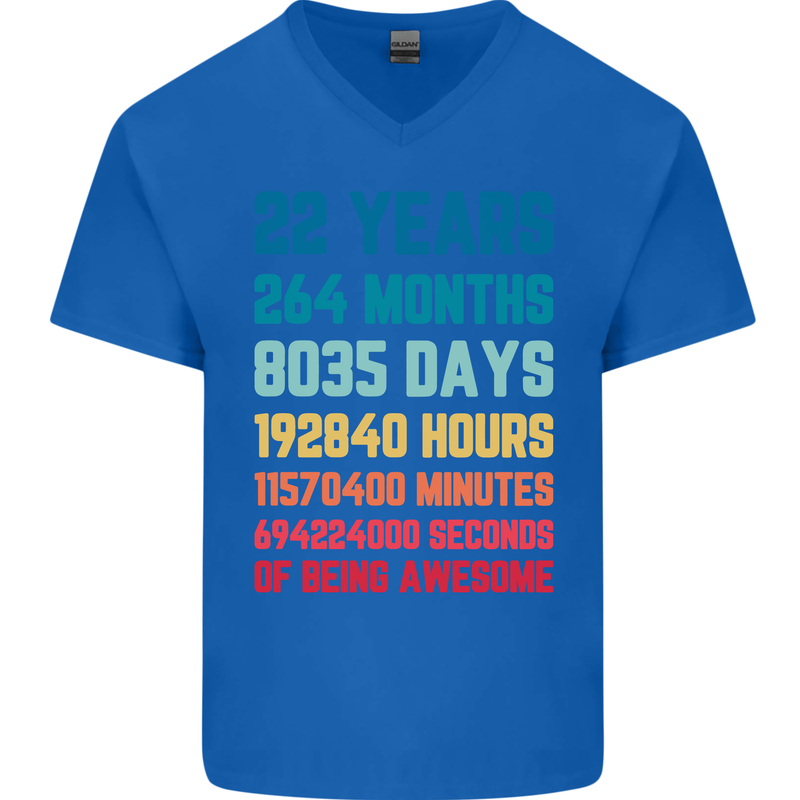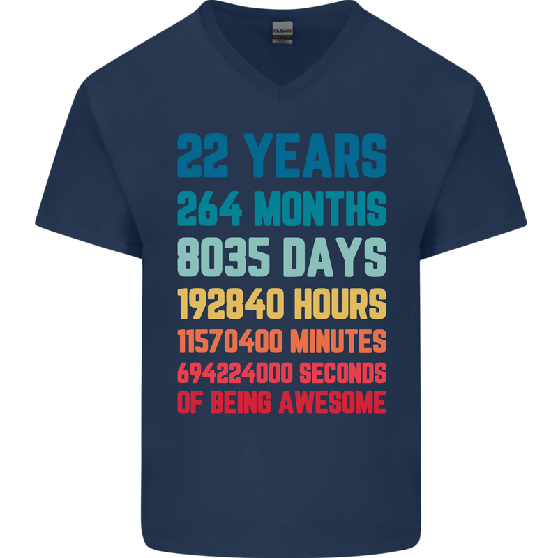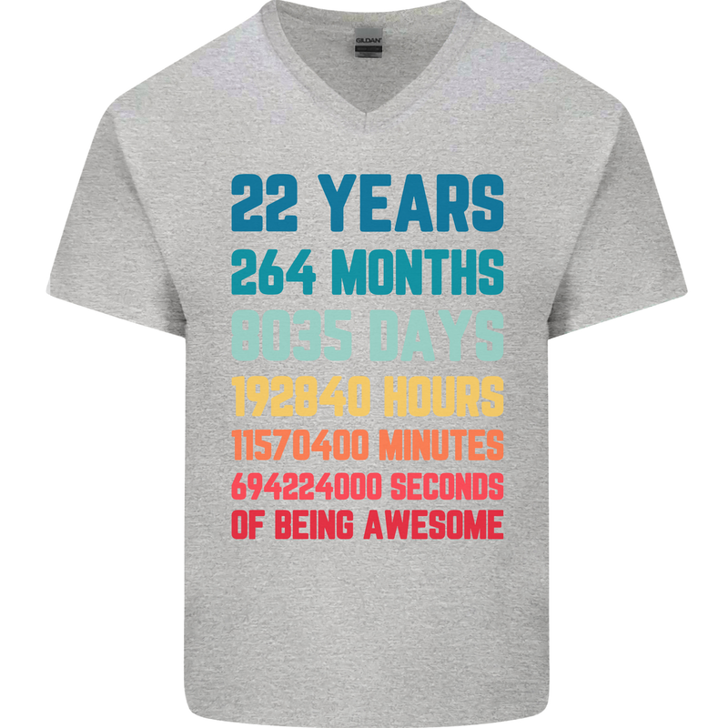 Step into your 22nd year in style with our 22nd Birthday Men's V-Neck Cotton T-Shirt. Crafted for comfort and style, this shirt is a must-have for any fashion-forward young man celebrating this milestone birthday.