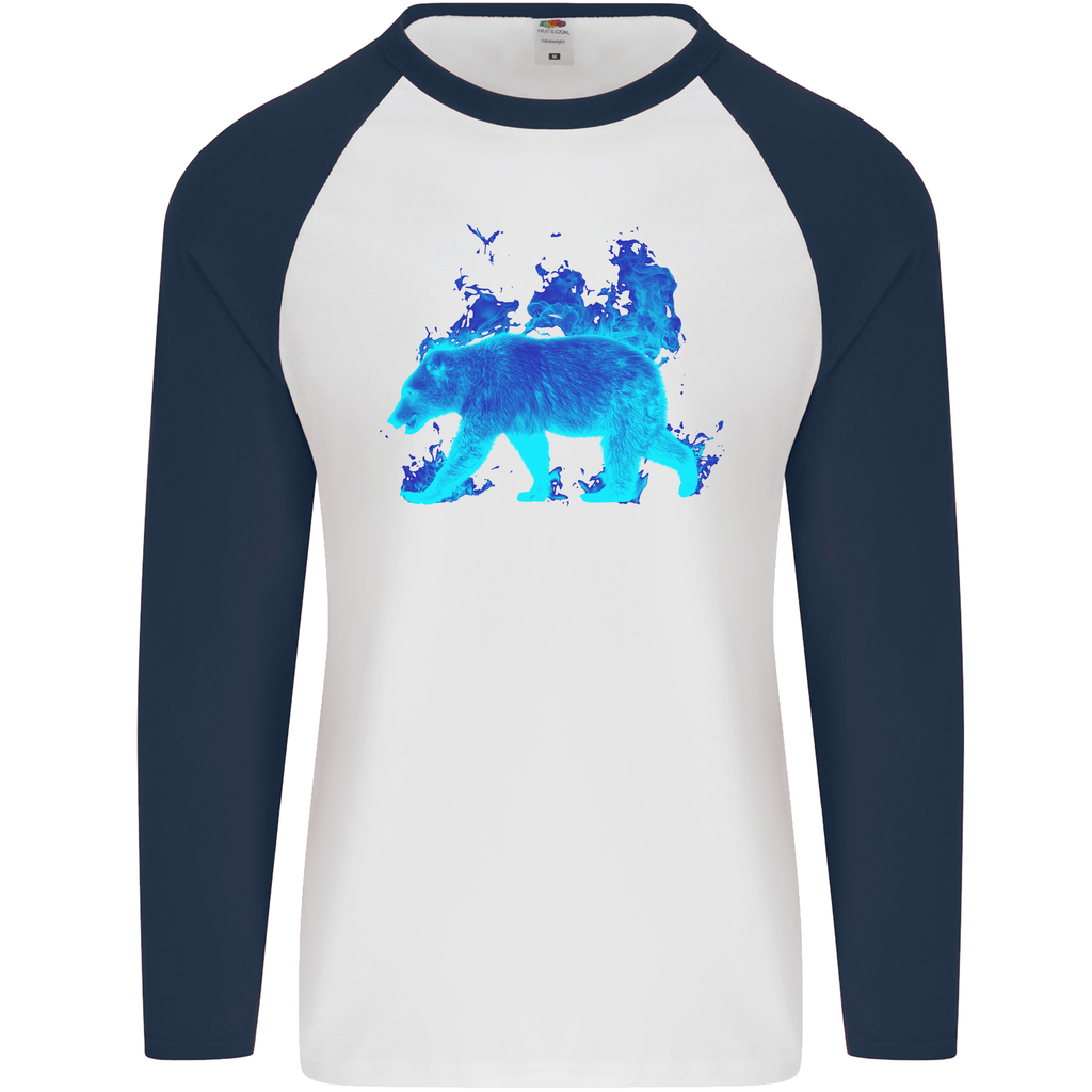 Available in multiple sizes, you can find the perfect fit to highlight your personal style. Don't miss out on this opportunity to elevate your casual fashion game. Embrace the wild side with the A Blue Flame Grizzly Bear Men's Long Sleeve Baseball T-Shirt, and let your personality shine through.