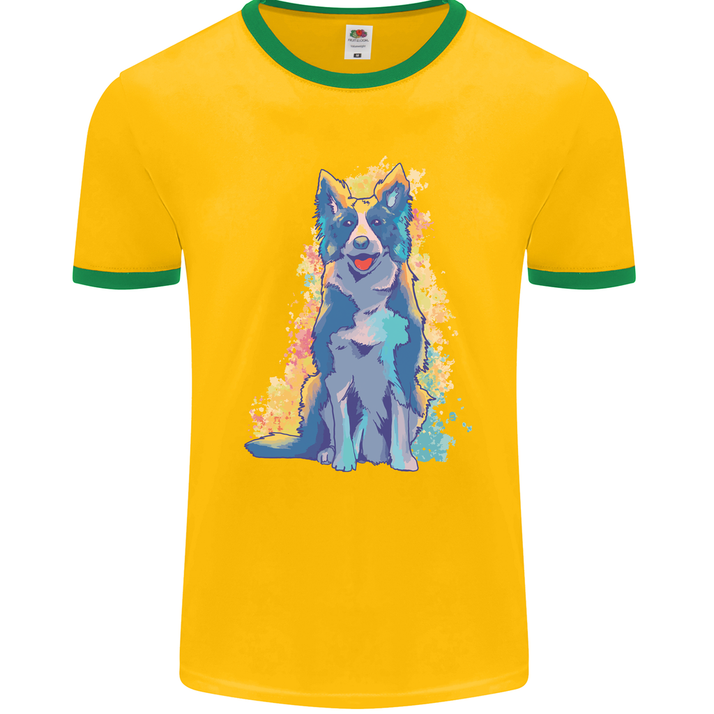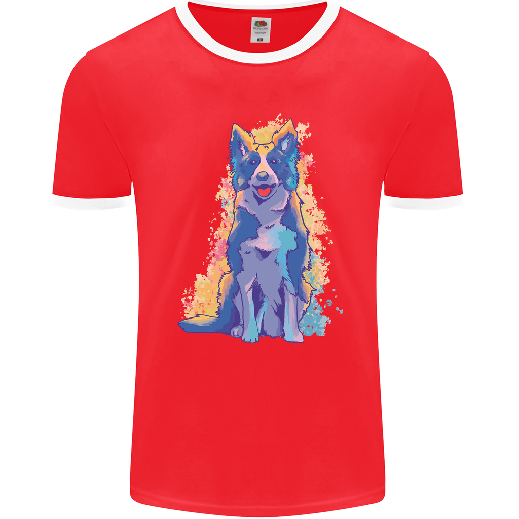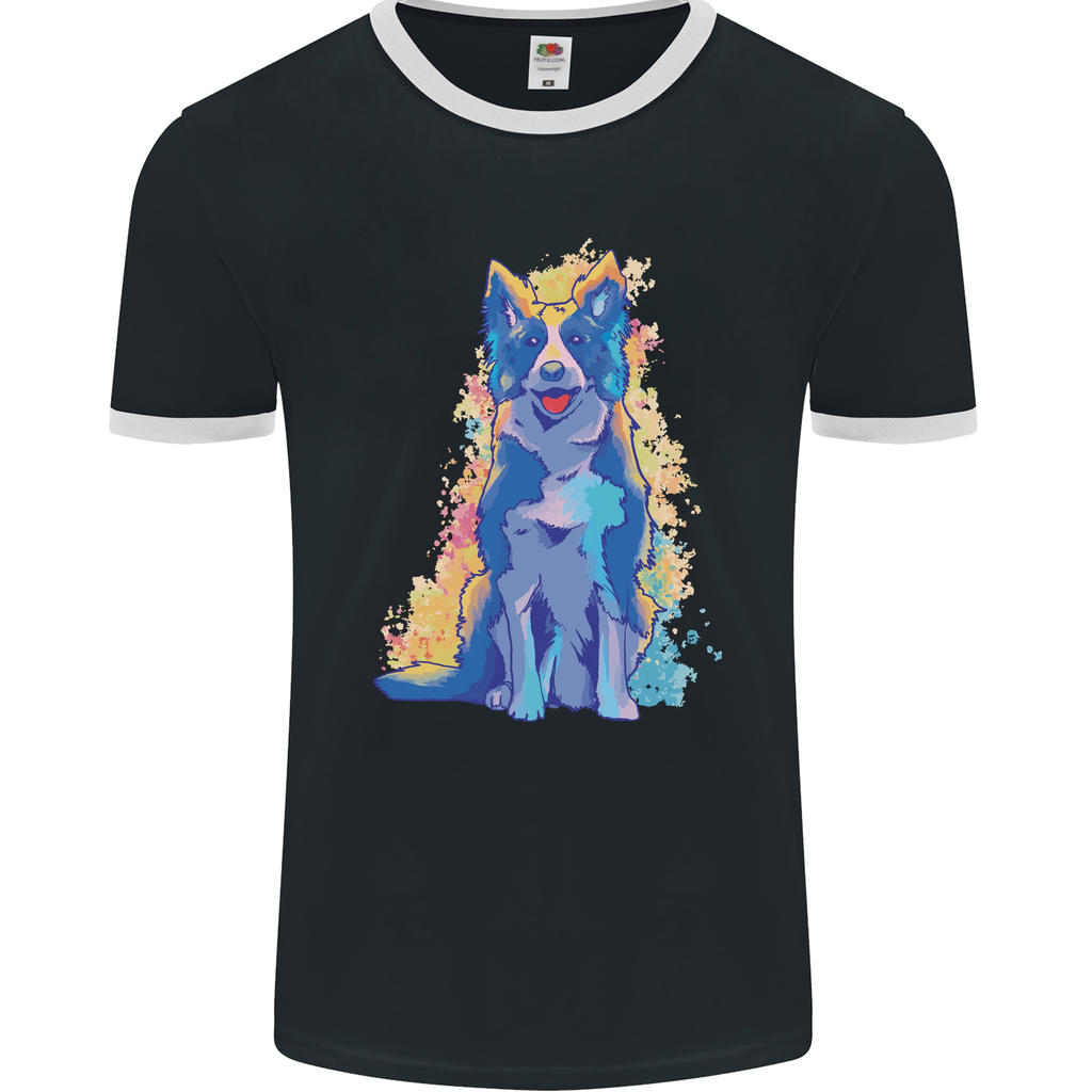 A Colourful Border Collie Dog Mens Ringer T-Shirt FotL