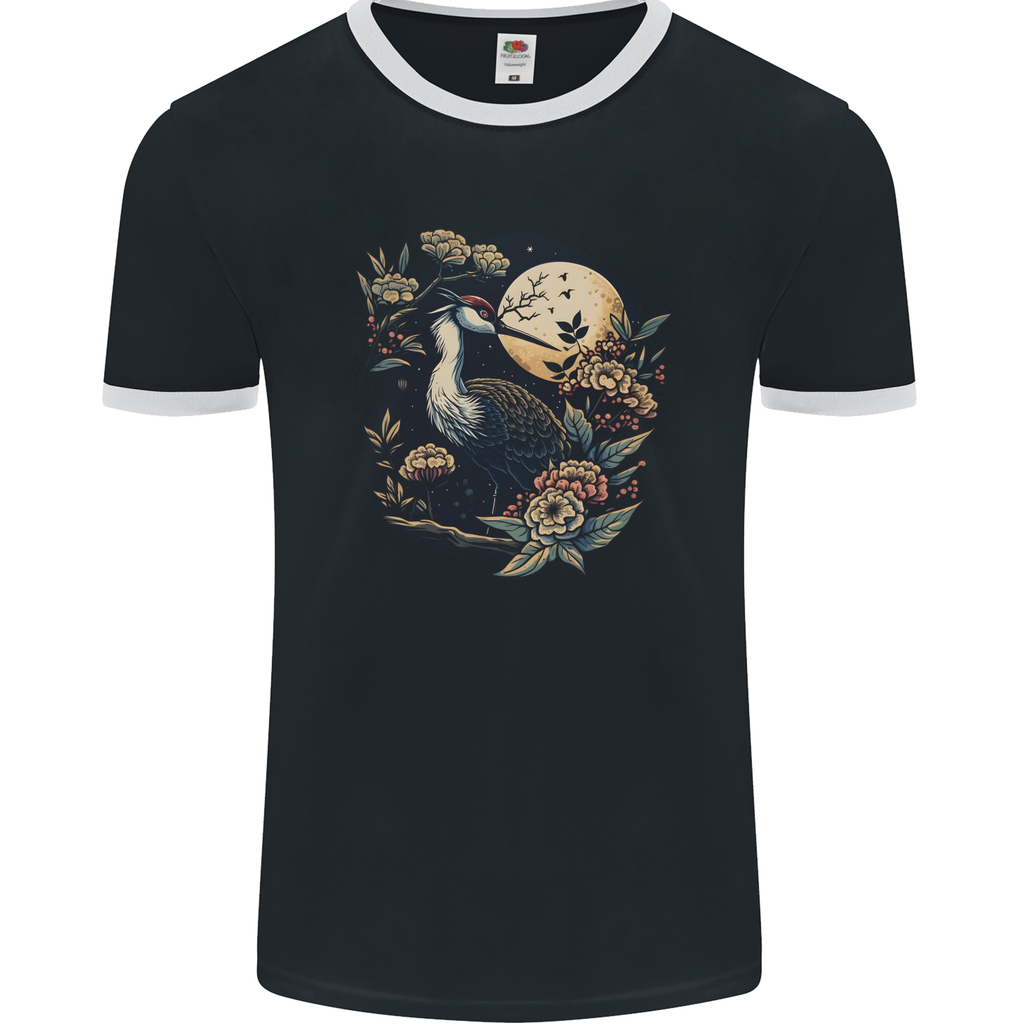 A Crane With Flowers and Moon Bird Mens Ringer T-Shirt FotL