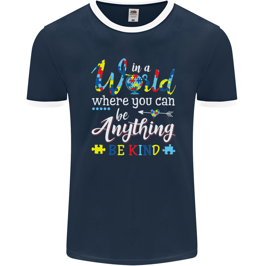 Available in a range of sizes to suit every individual, our "Autism In a World Be Kind" Men's Ringer T-Shirt is a must-have for those who want to showcase their personality and advocate for acceptance. Stand out from the crowd and champion diversity with this stylish and meaningful piece of clothing.