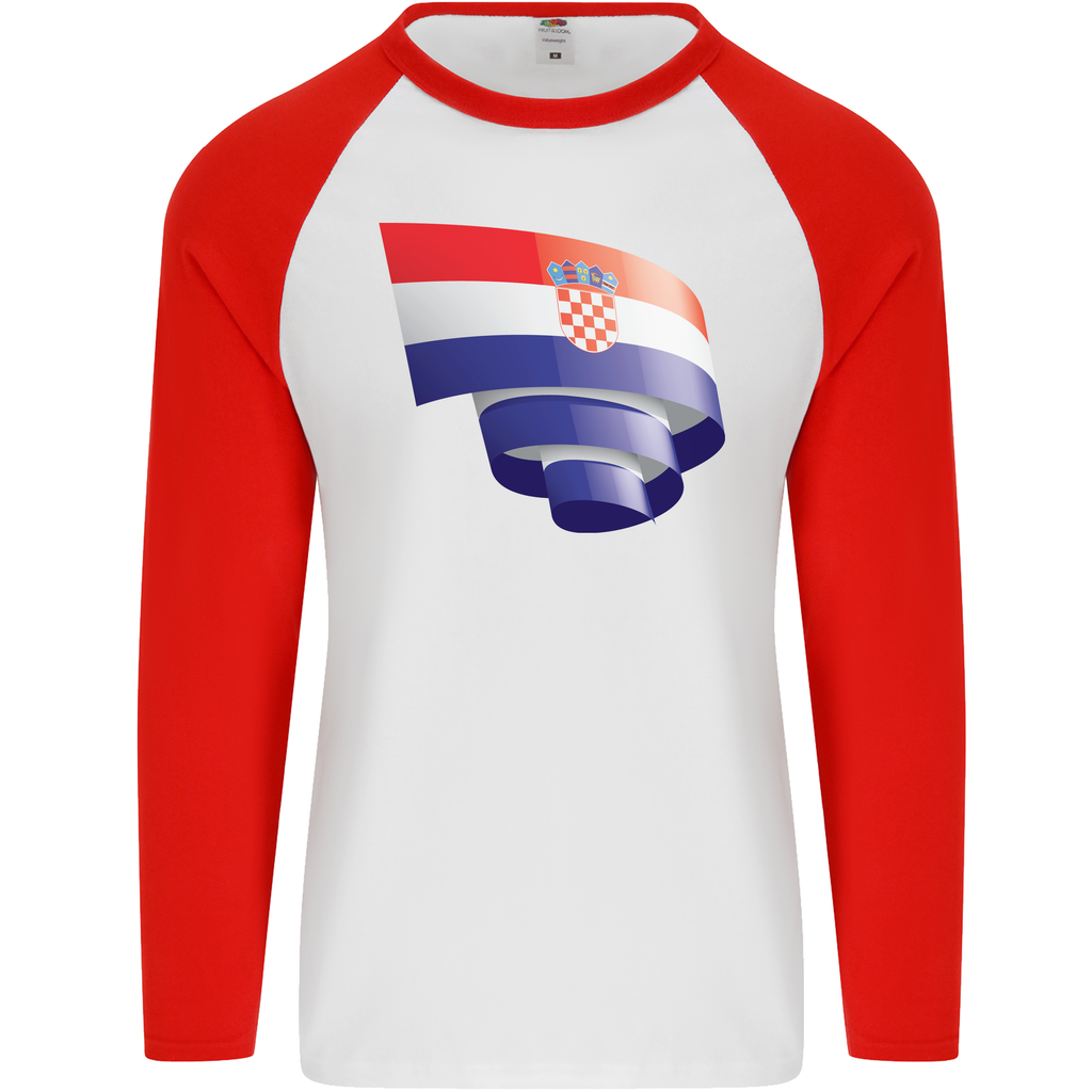 Curled Croatia Flag Croatian Day Football Mens L/S Baseball T-Shirt